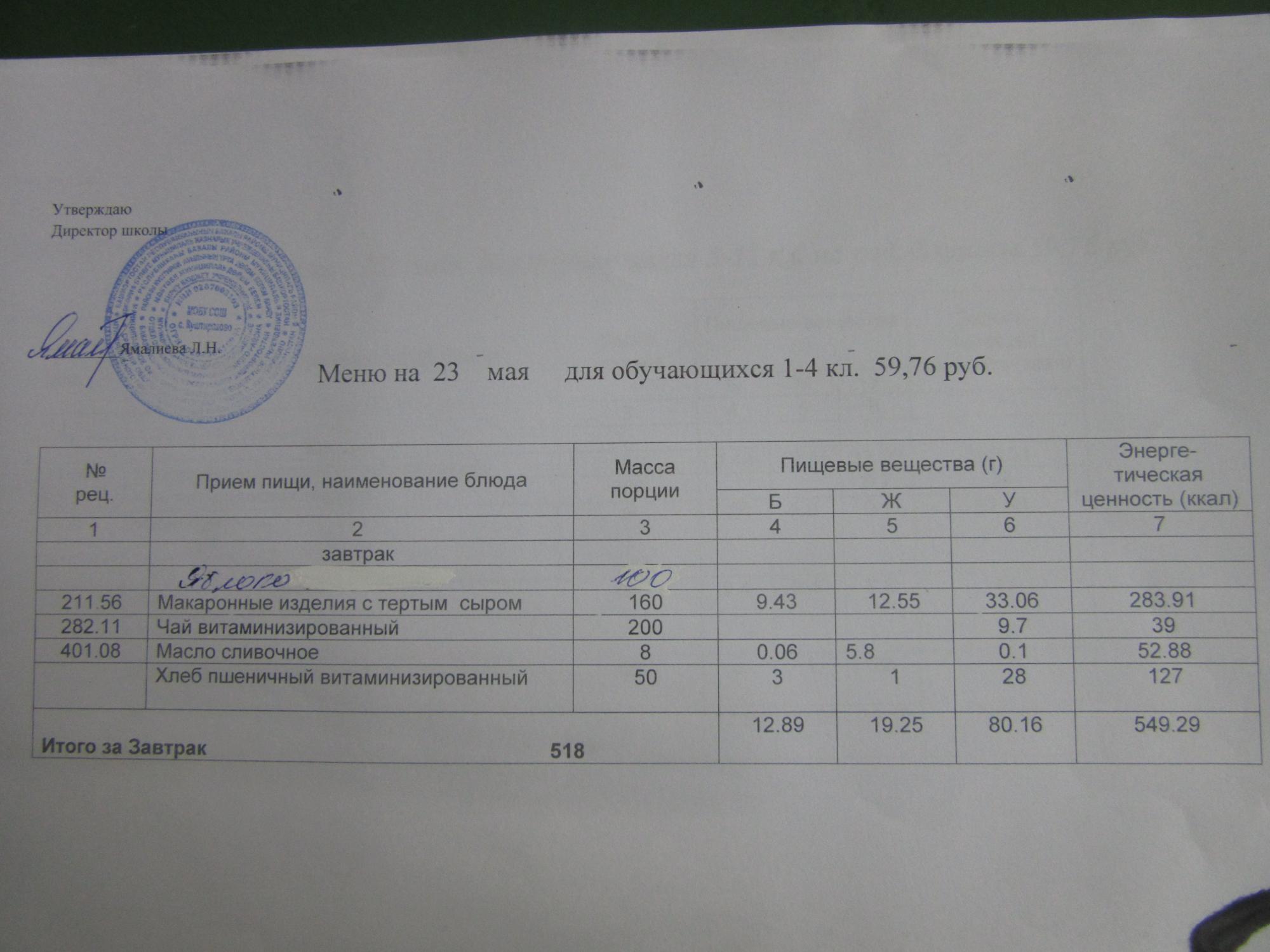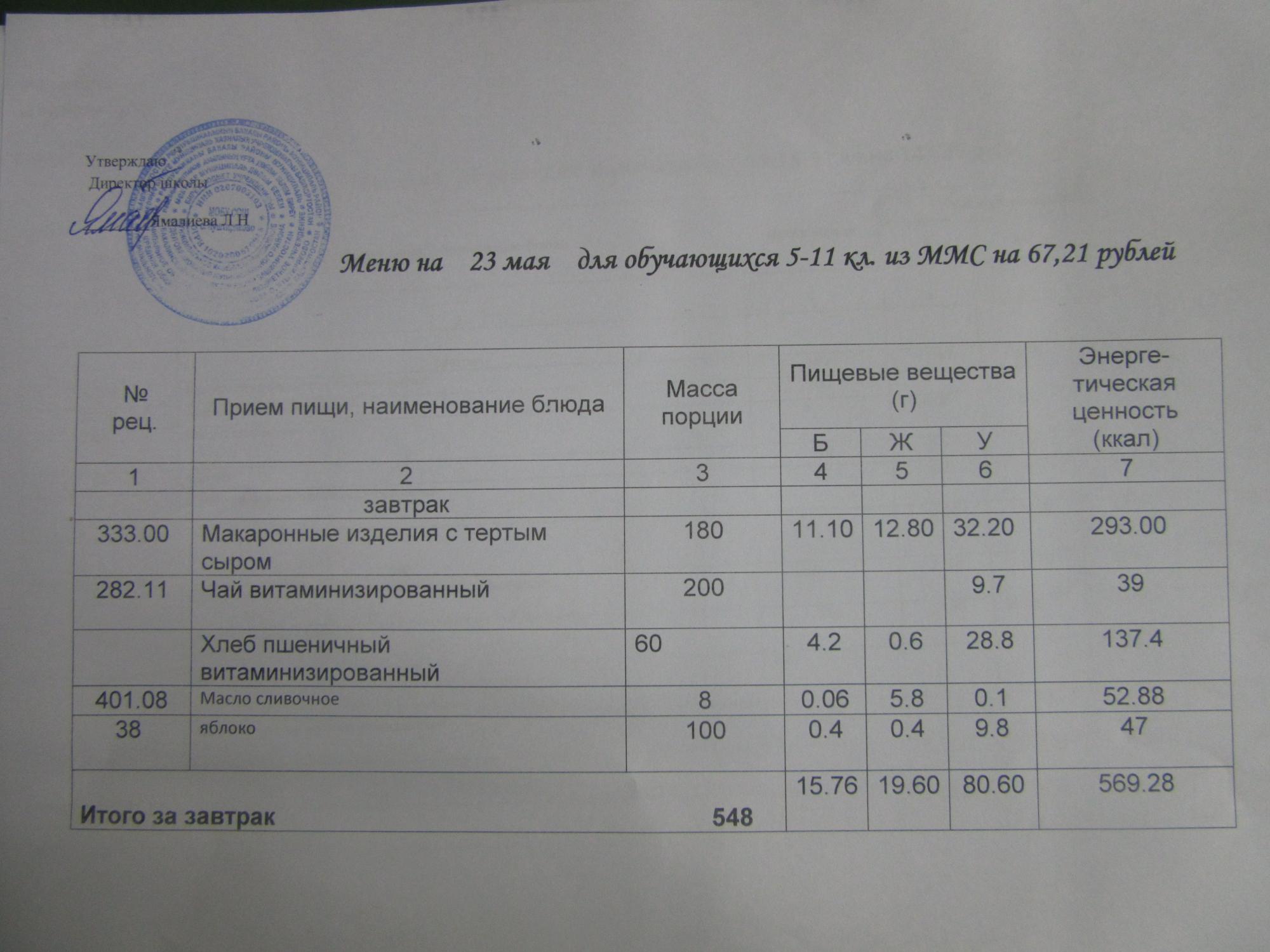 (ММС (старшие классы), завтрак ОВЗ )