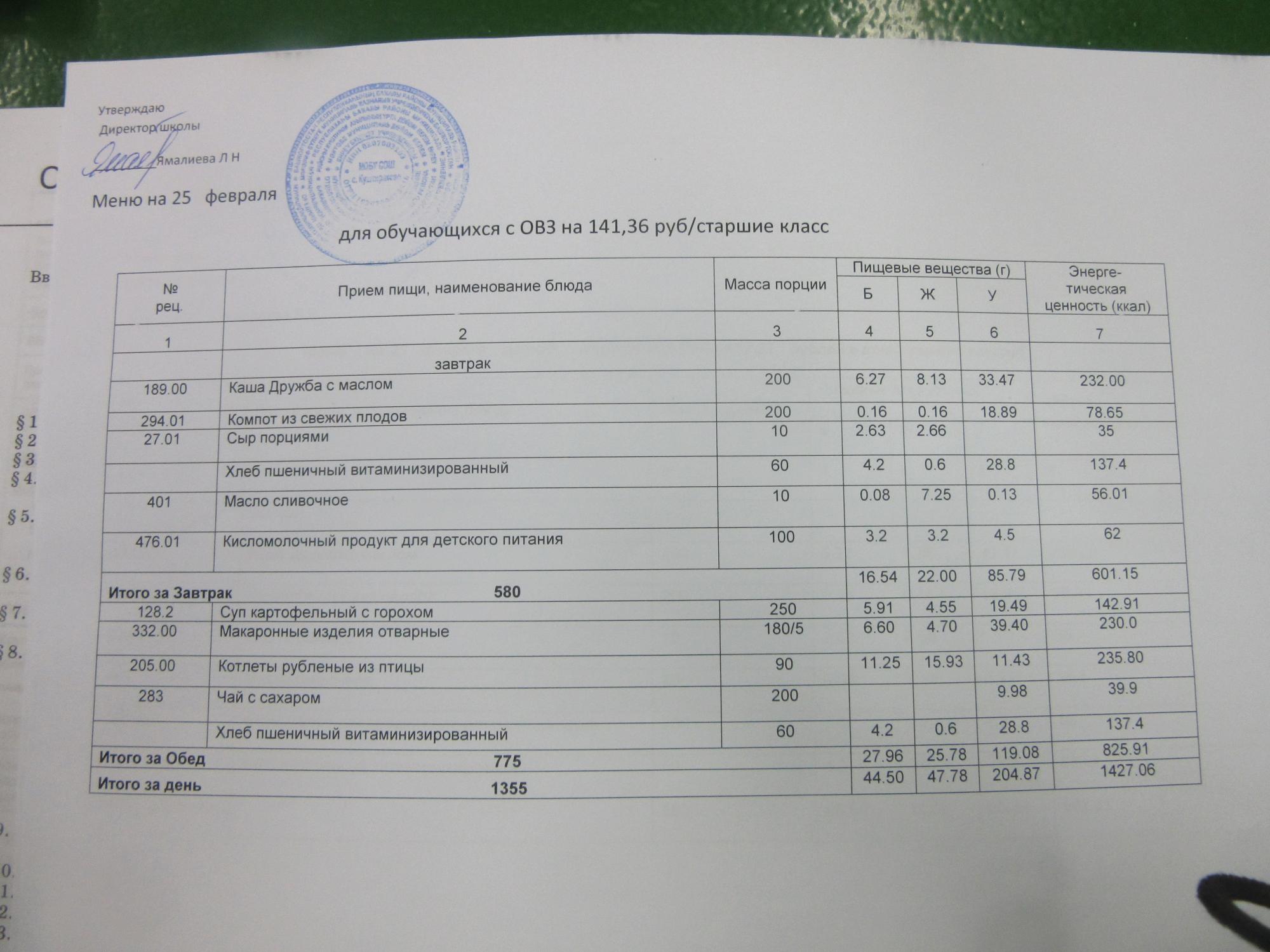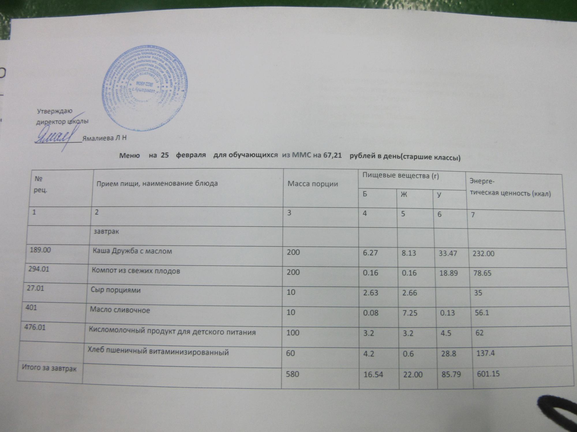 (ММС (старшие классы), завтрак ОВЗ )