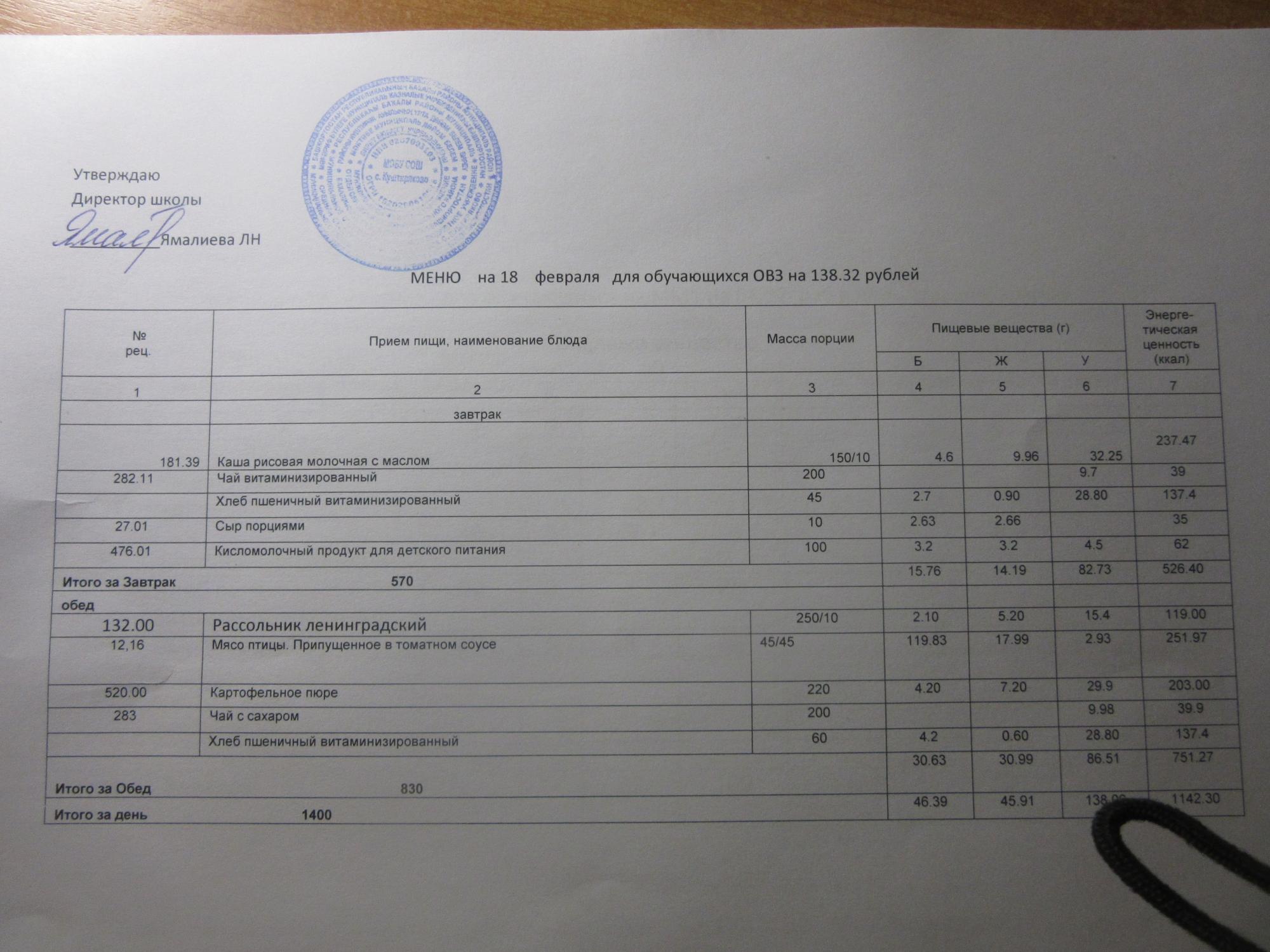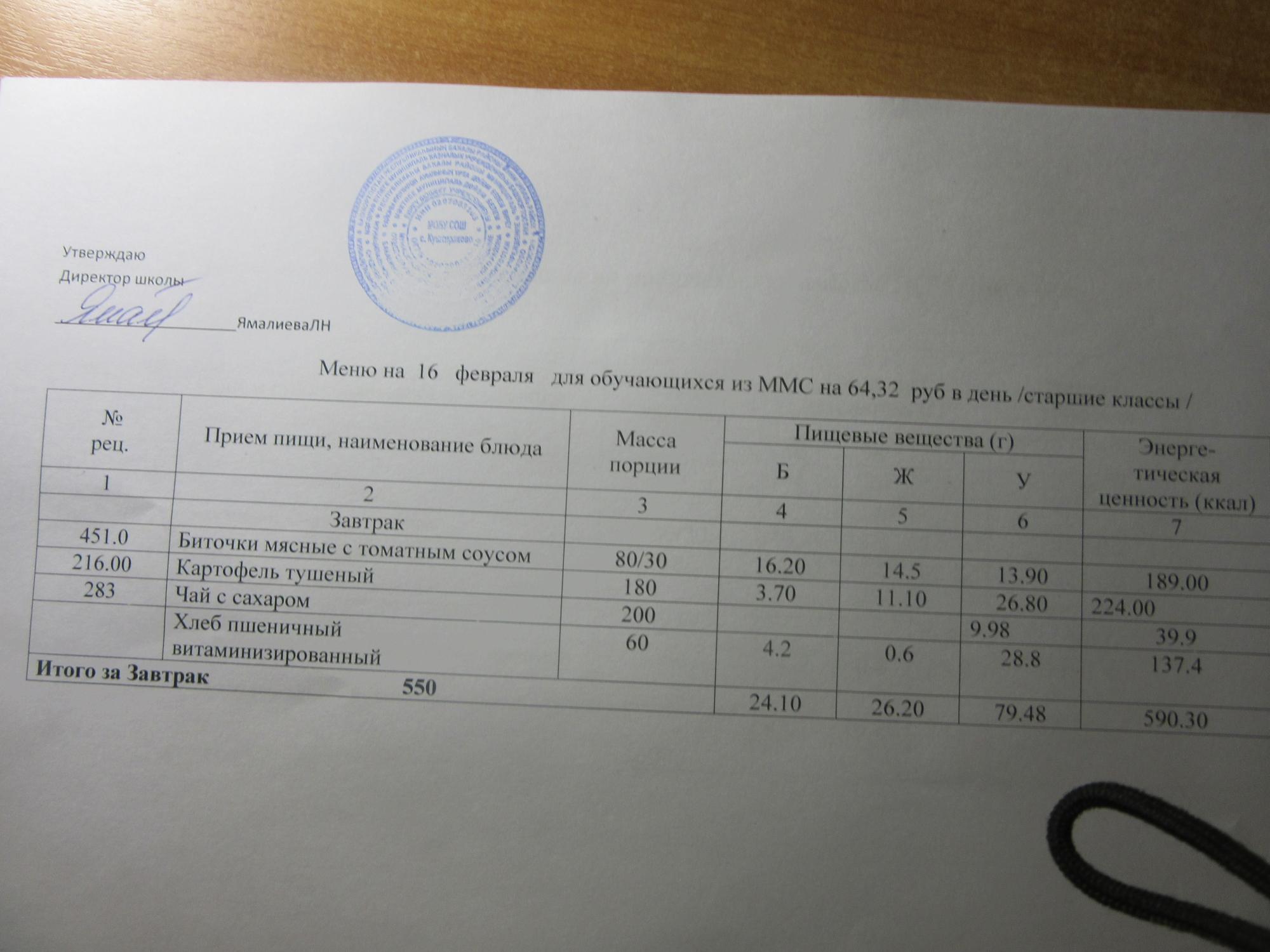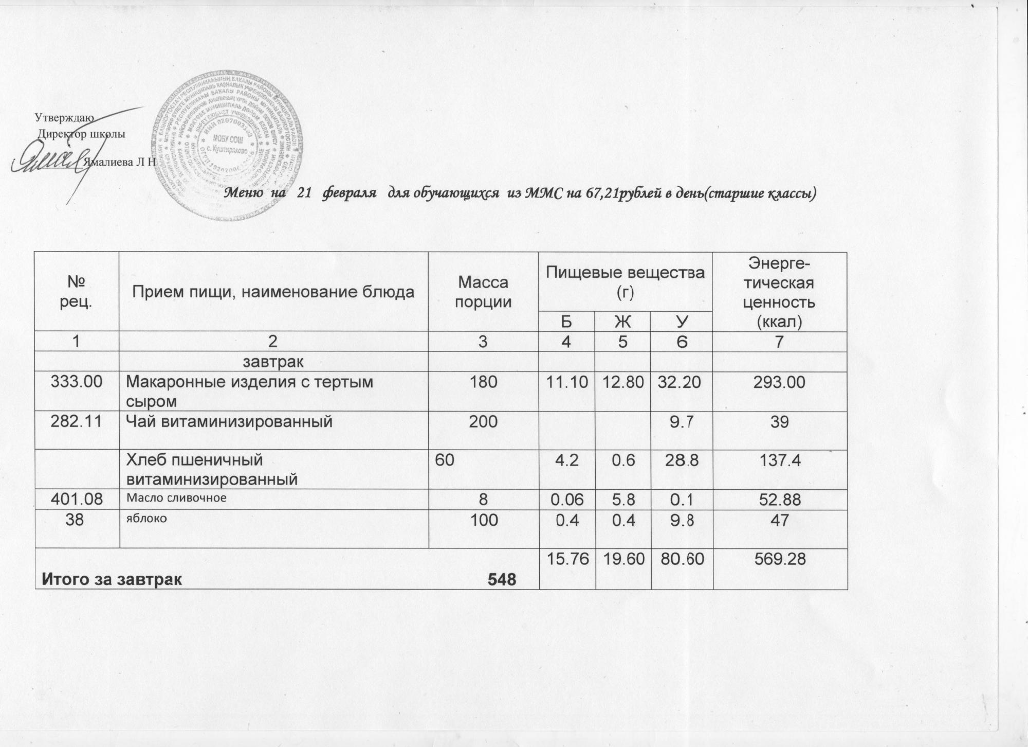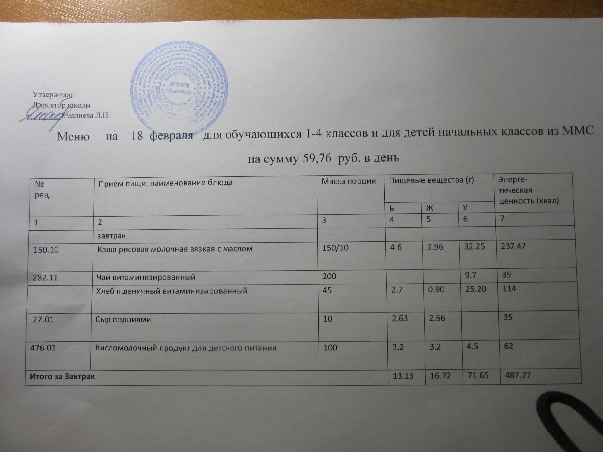 (ММС (старшие классы), РП, завтрак ОВЗ )