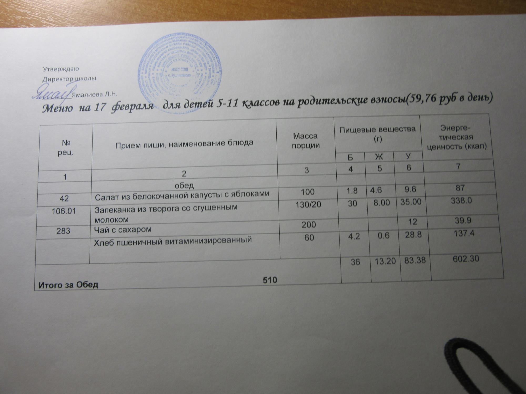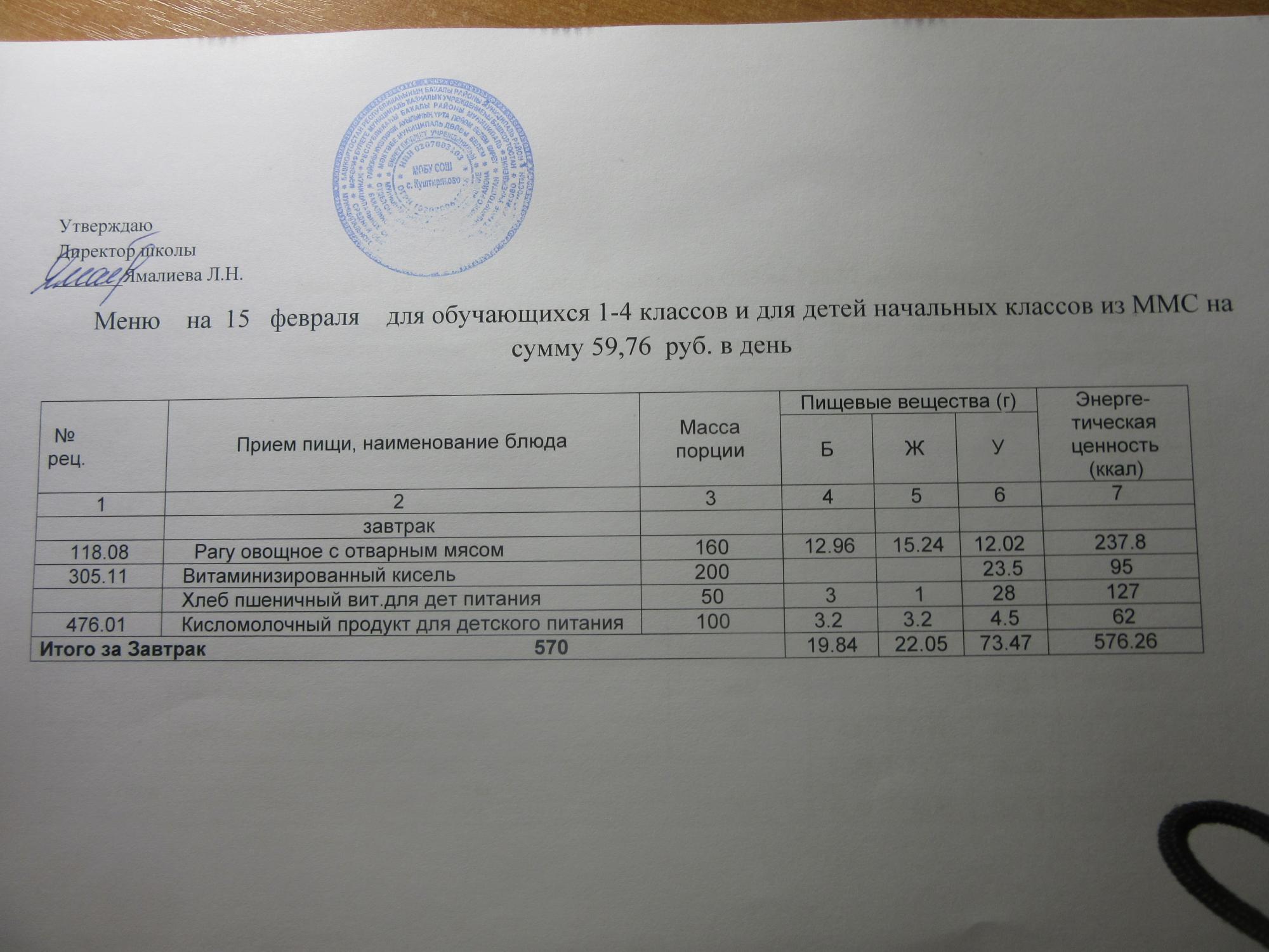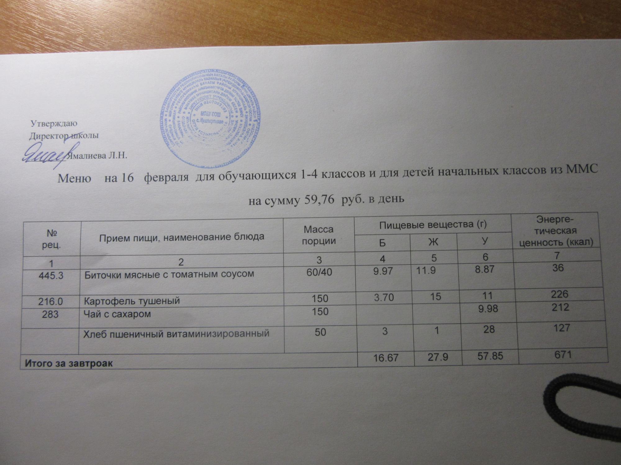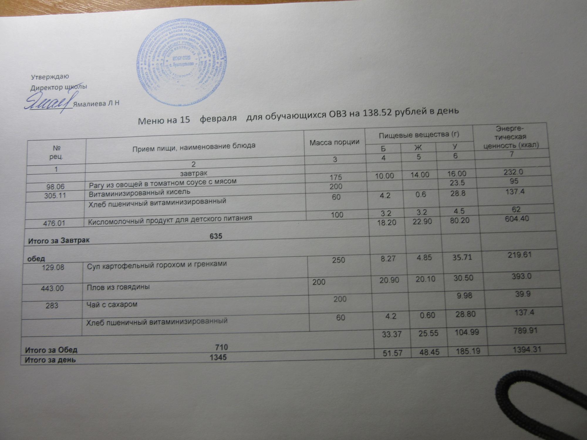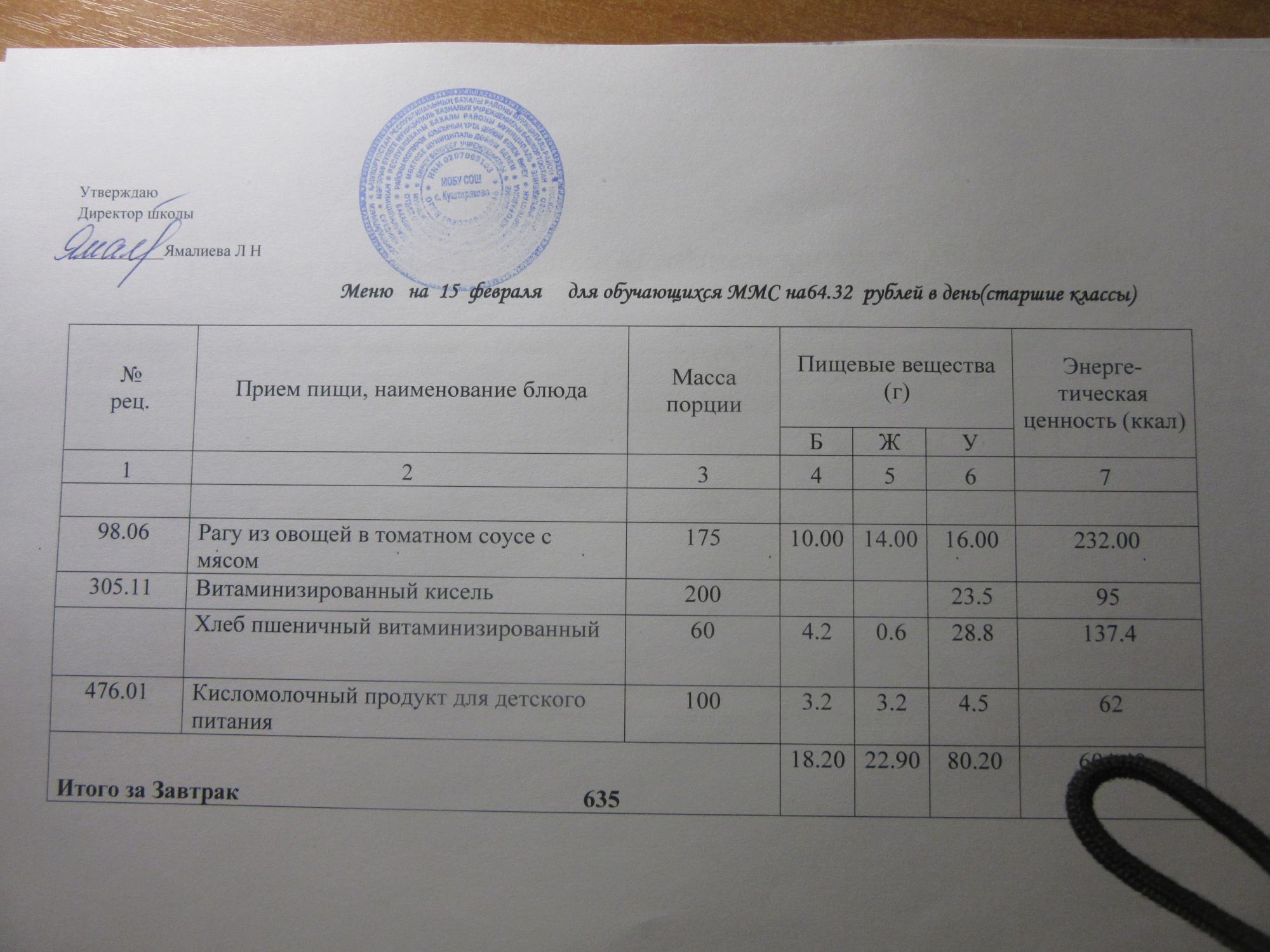 (ММС (старшие классы), РП, завтрак ОВЗ )