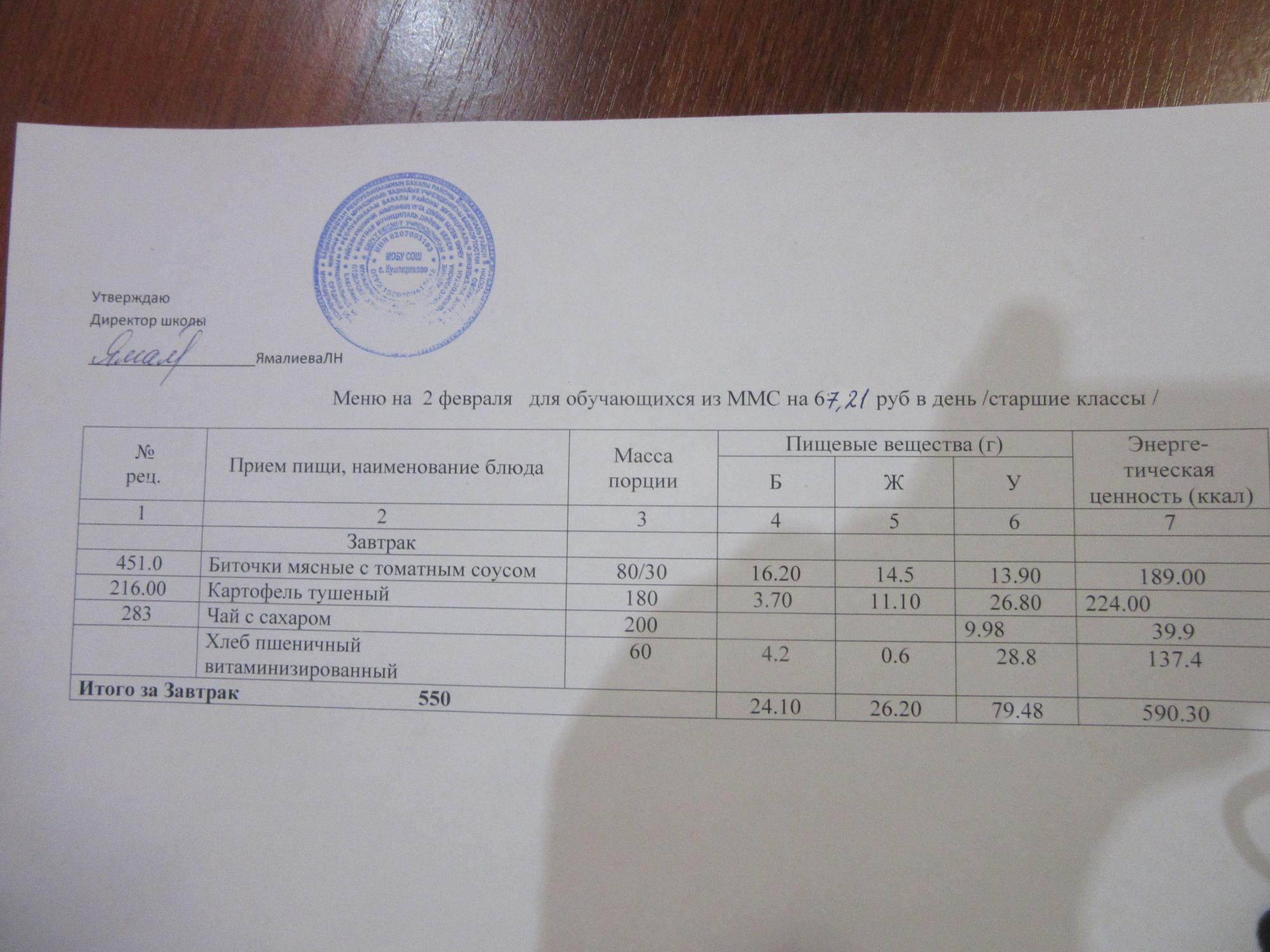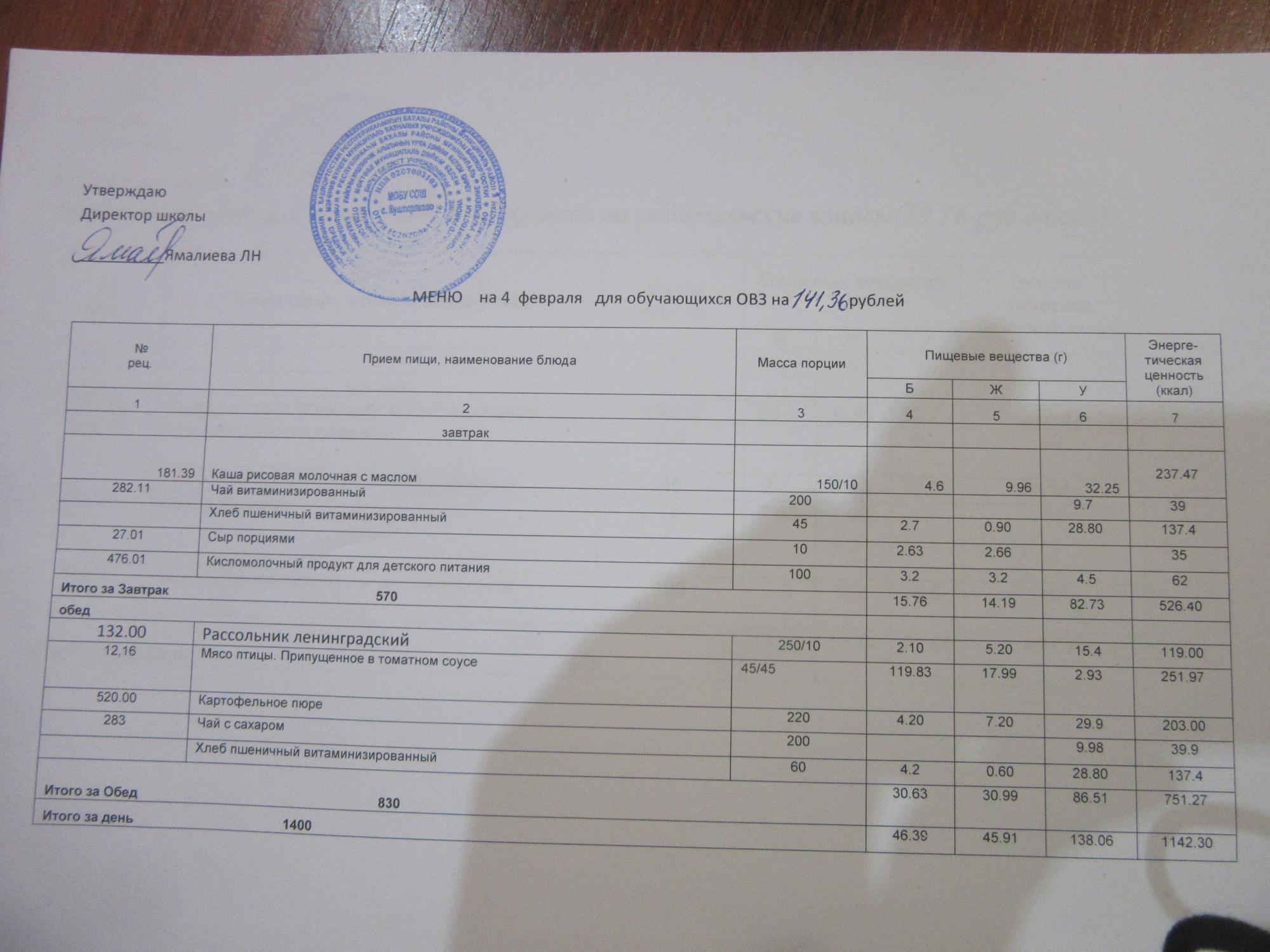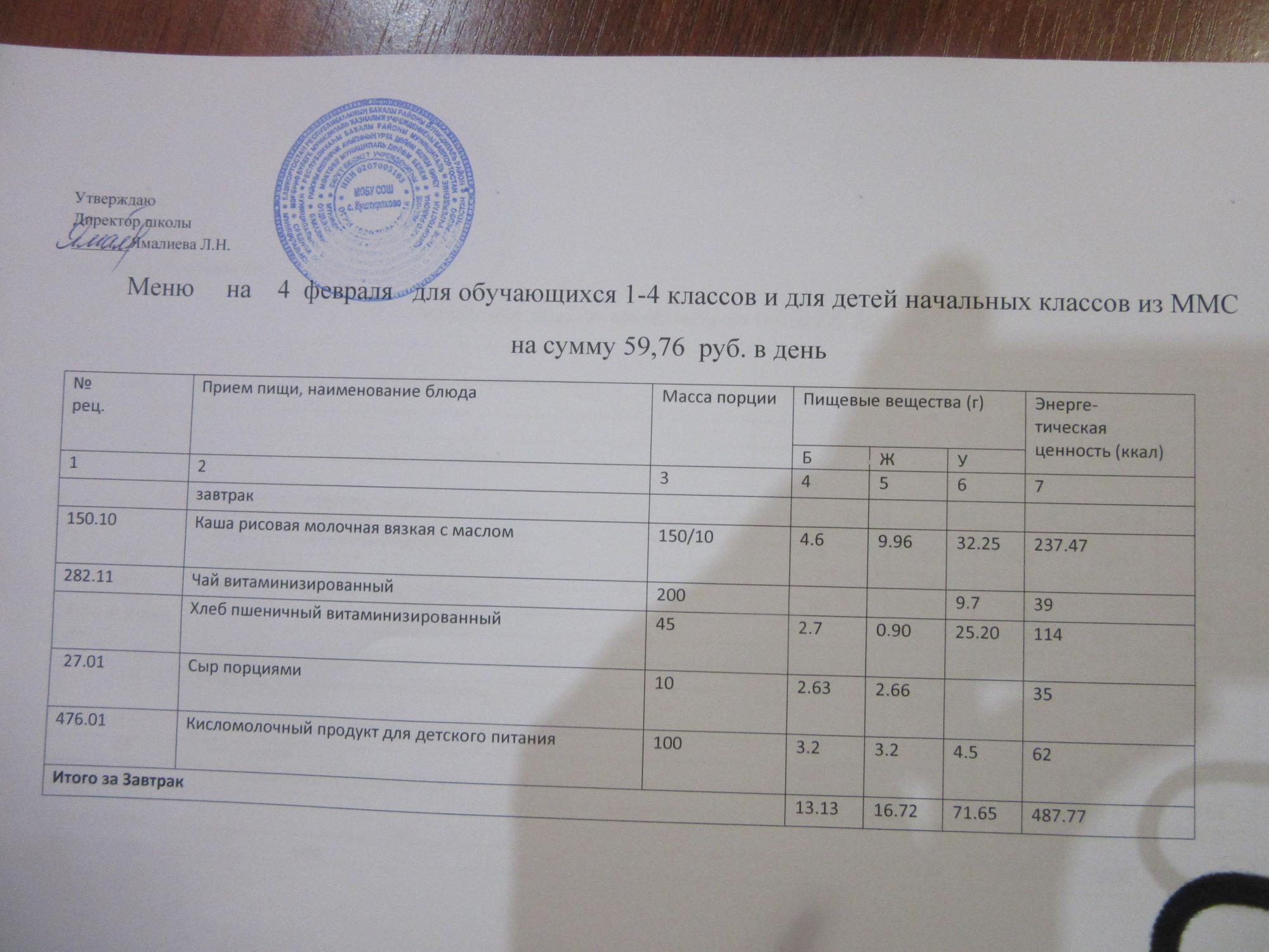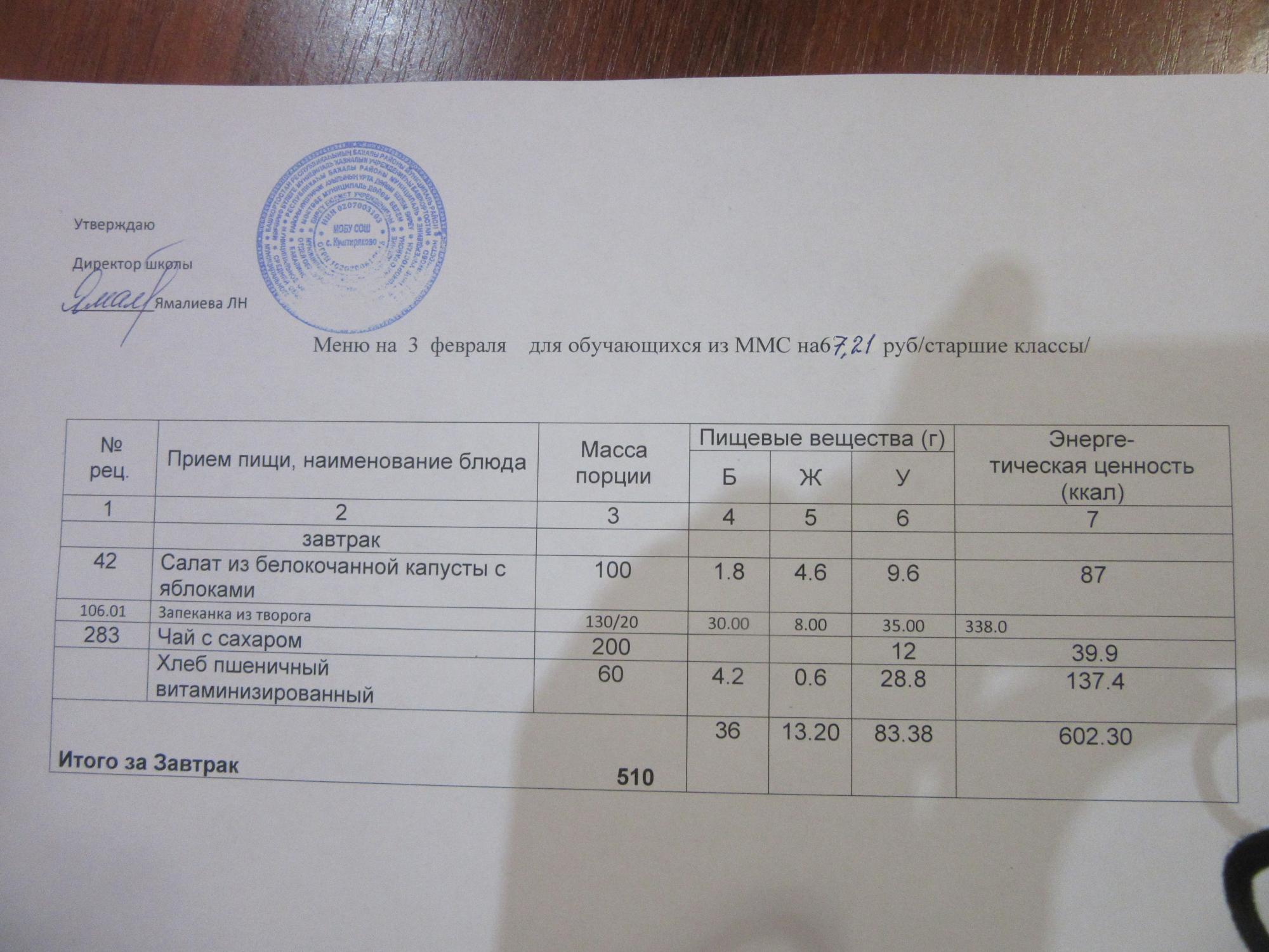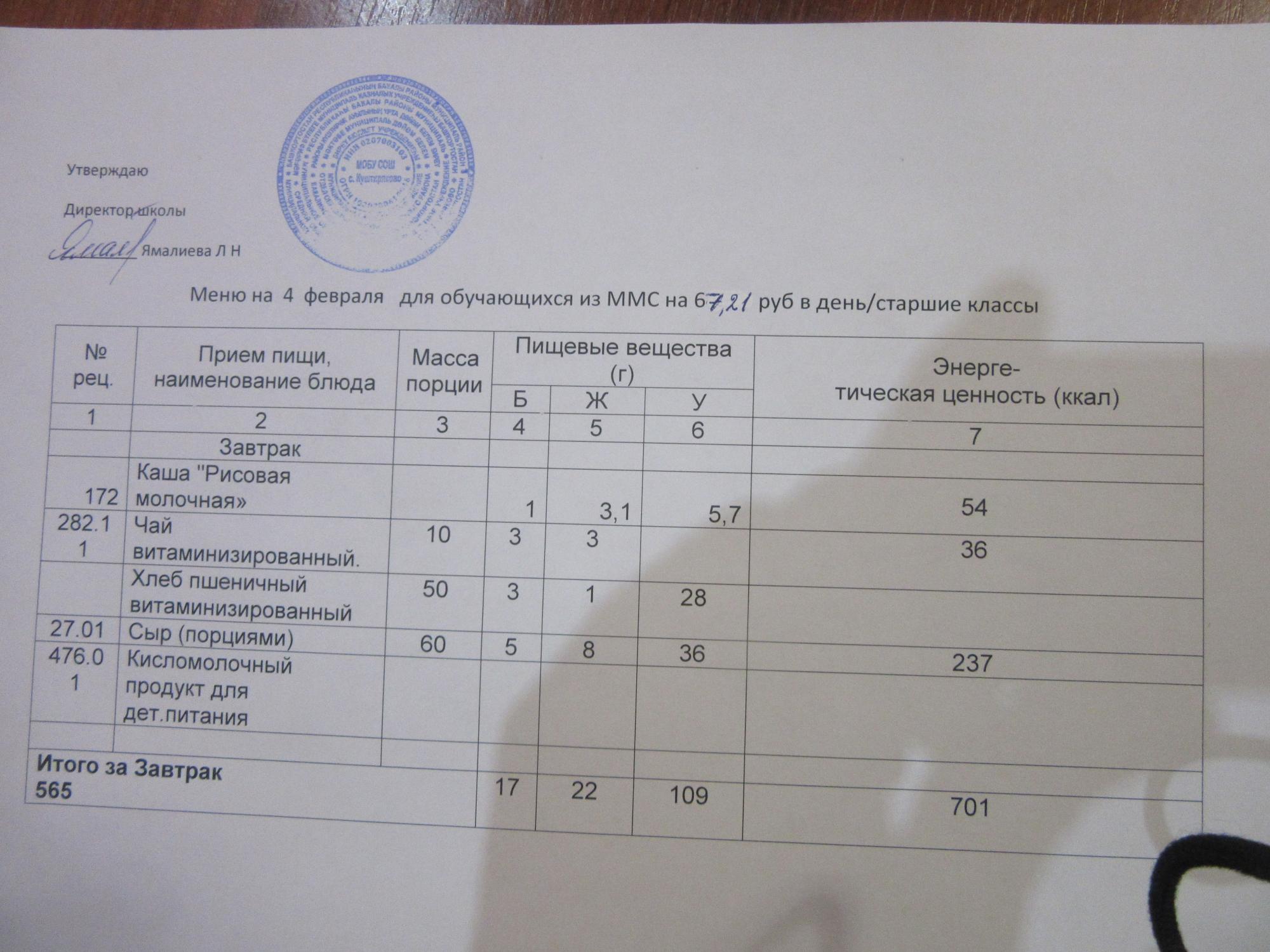 (ММС (старшие классы), РП, завтрак ОВЗ )