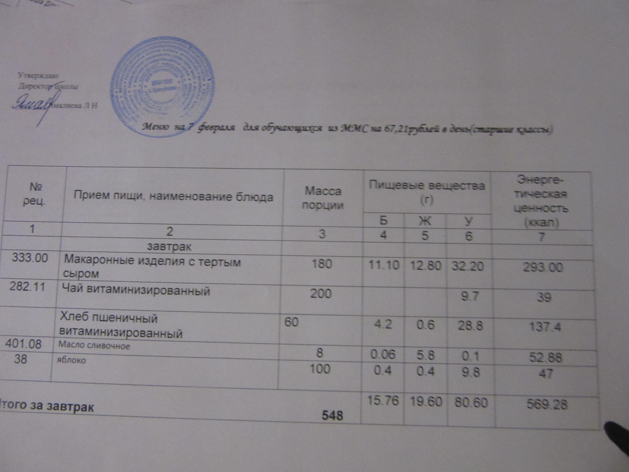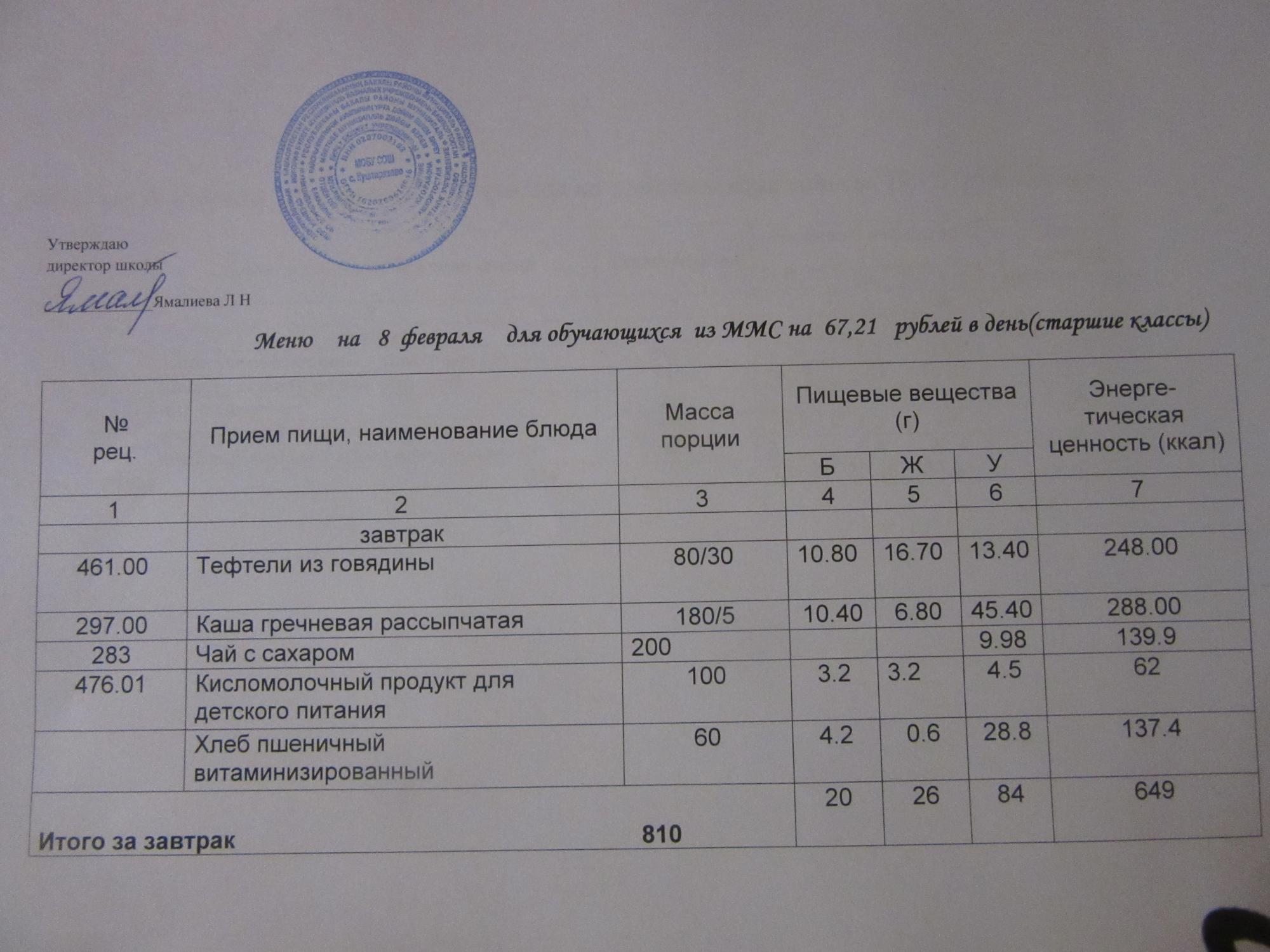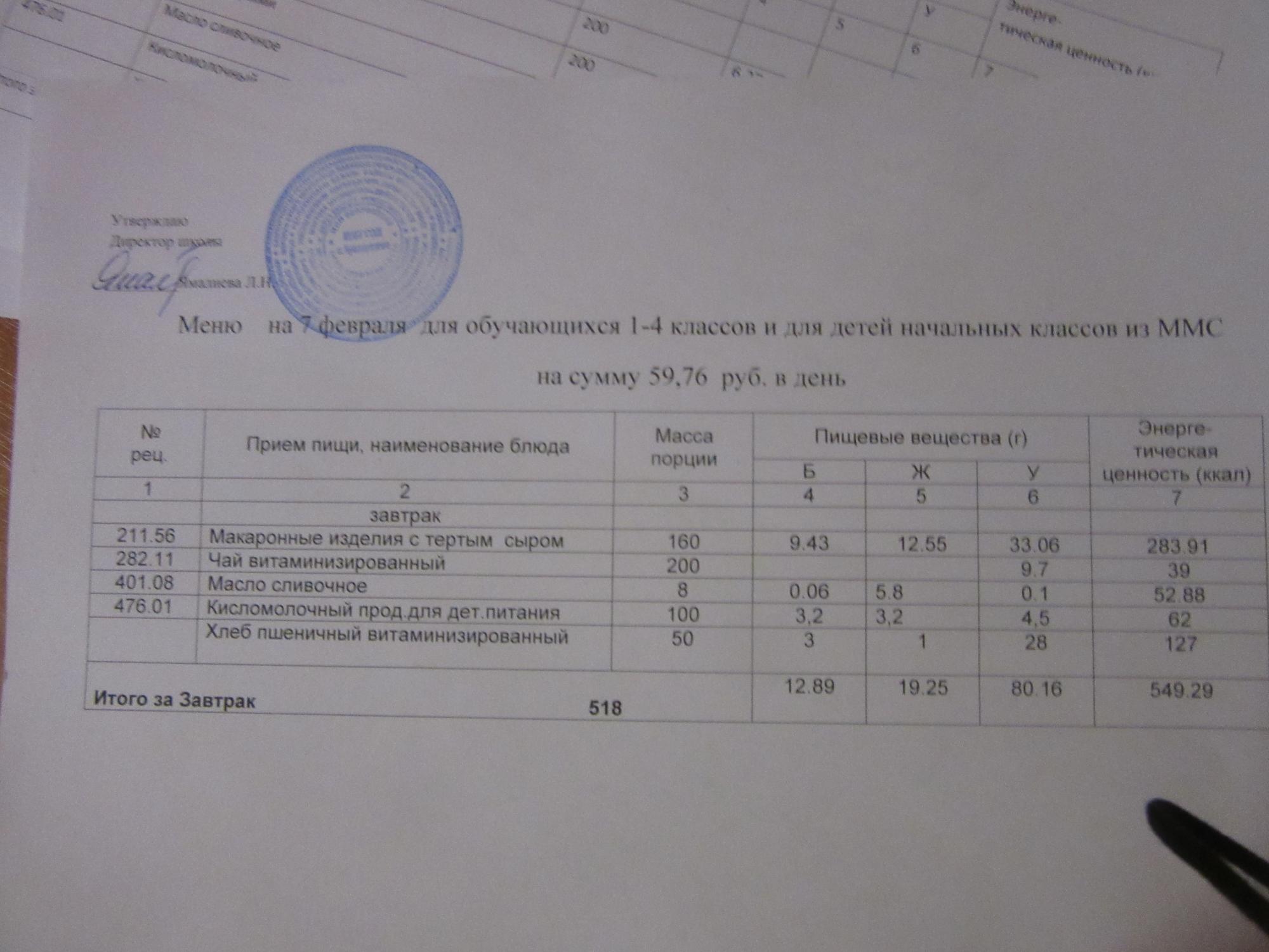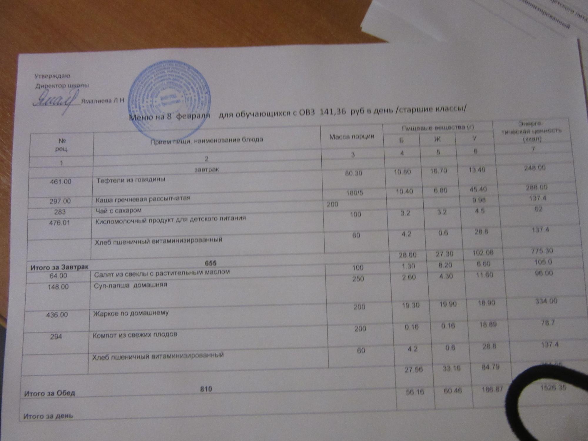 (ММС (старшие классы), РП, завтрак ОВЗ )