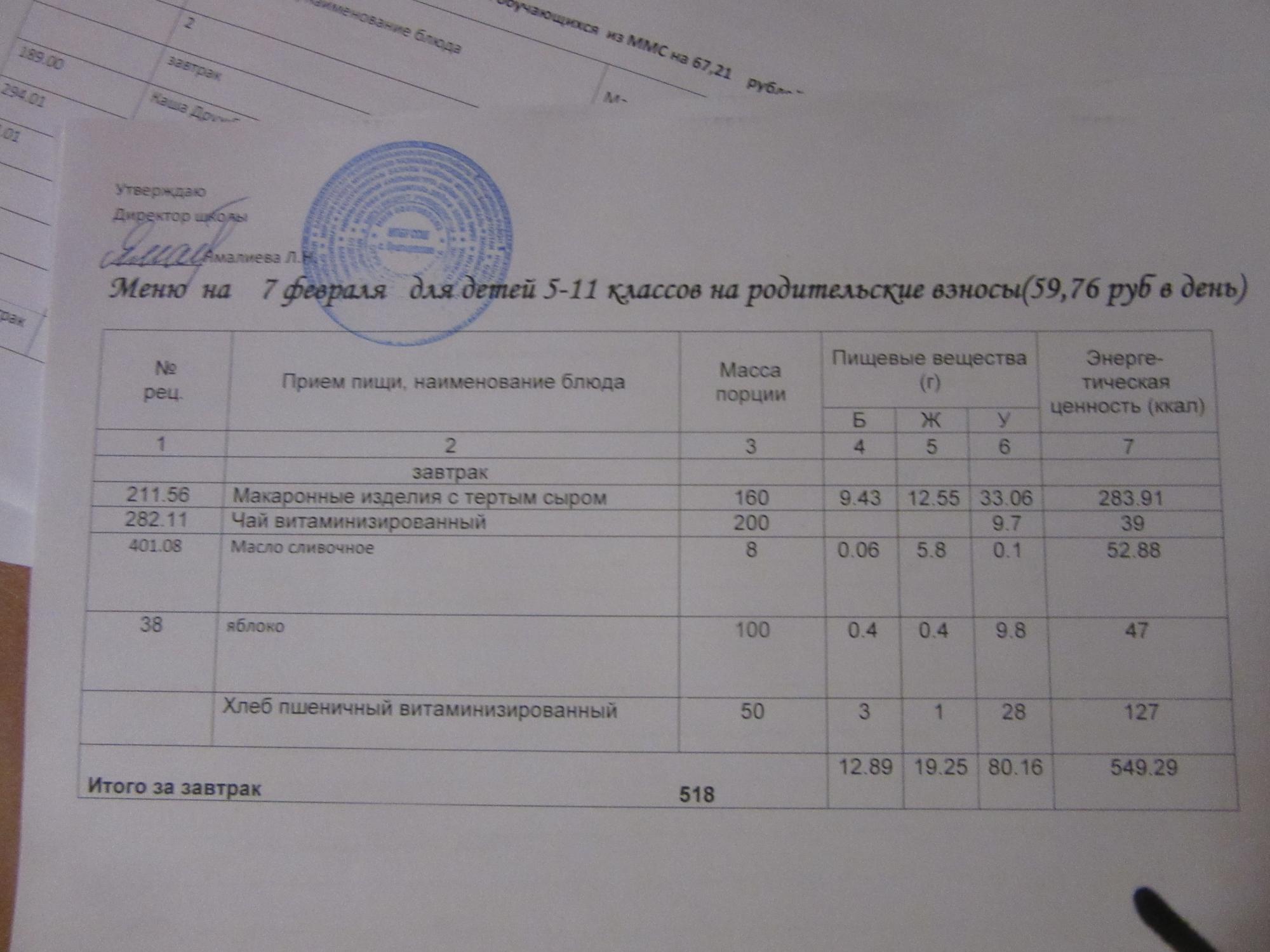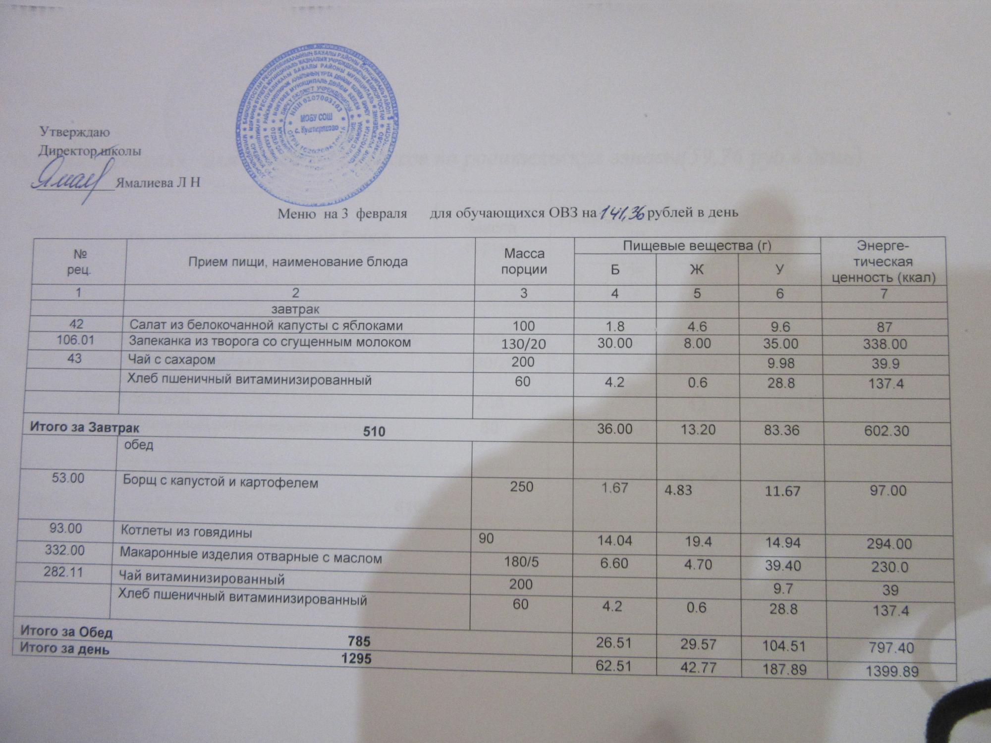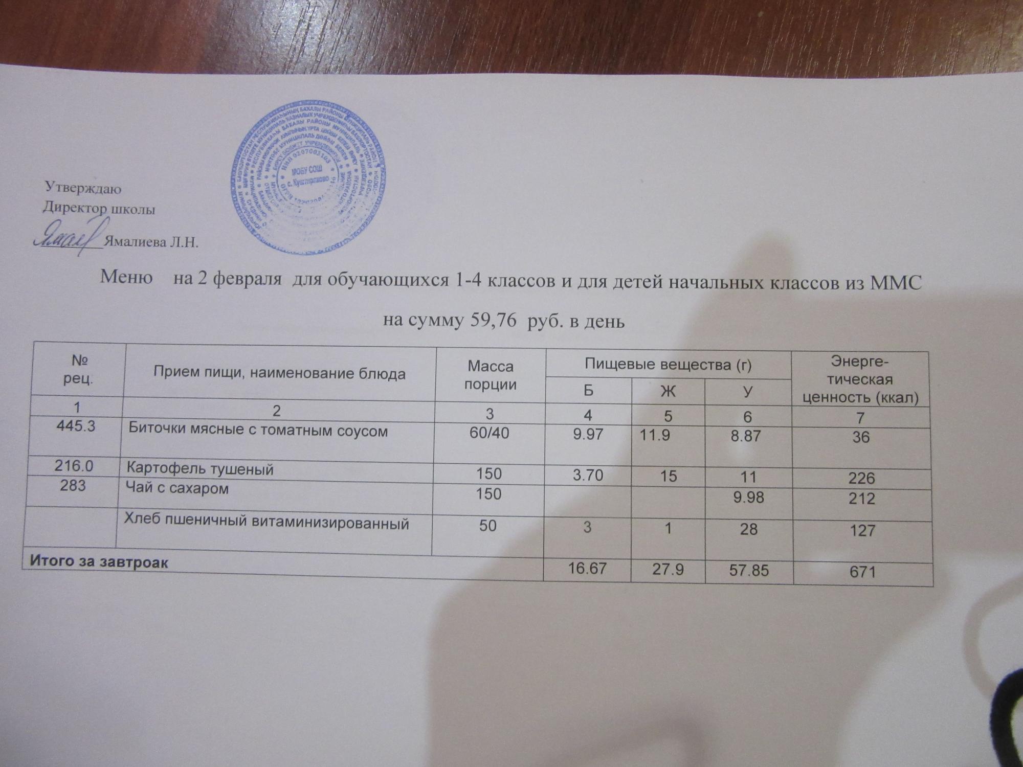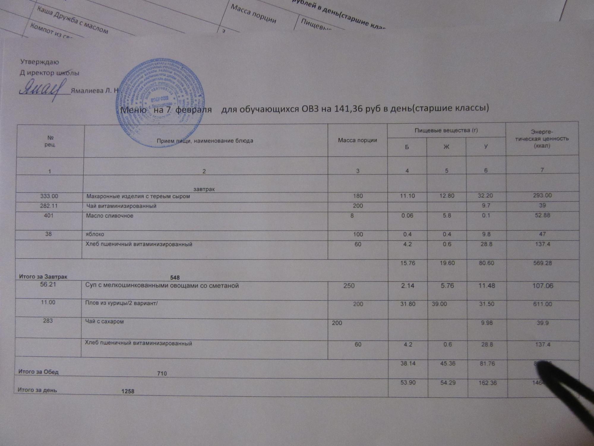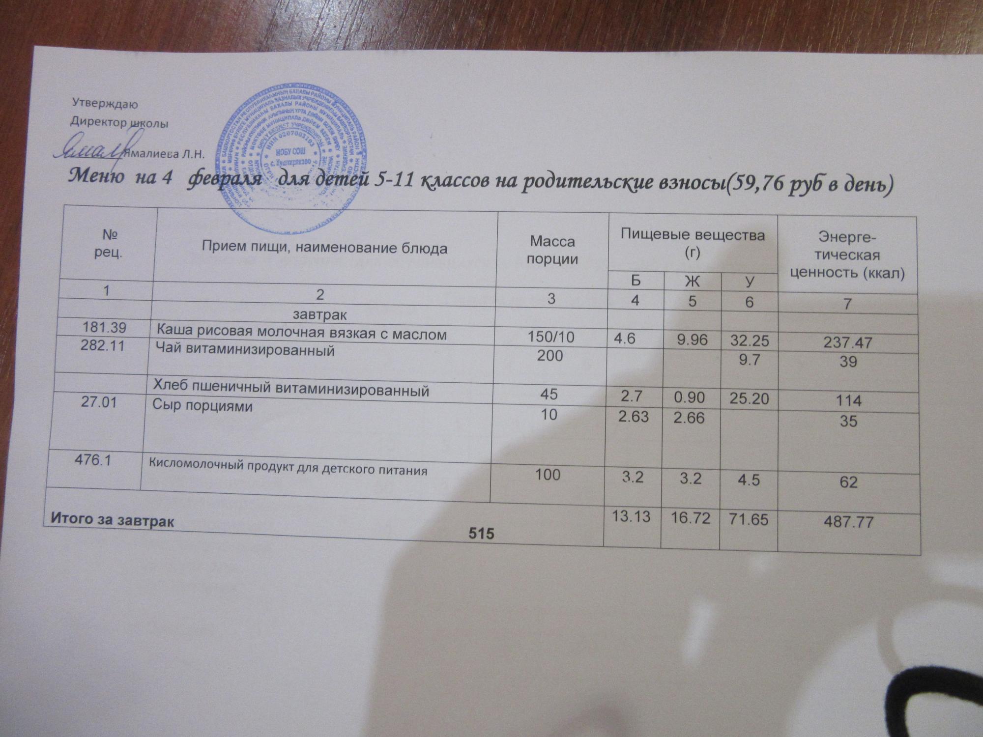 (ММС (старшие классы), РП, завтрак ОВЗ )