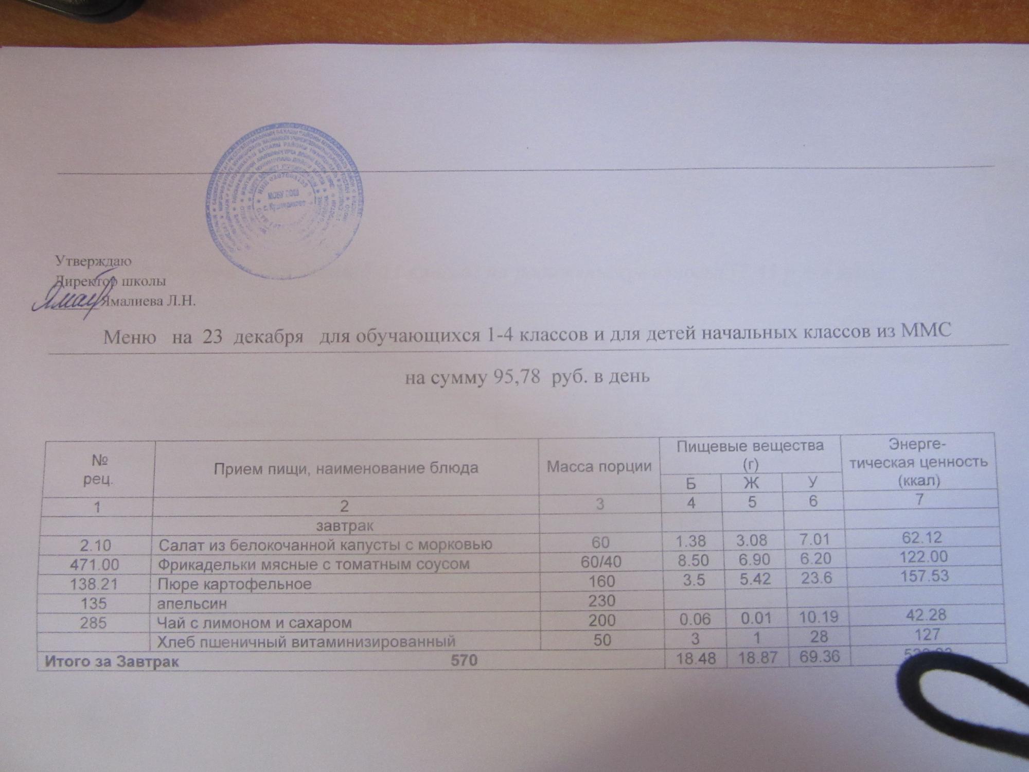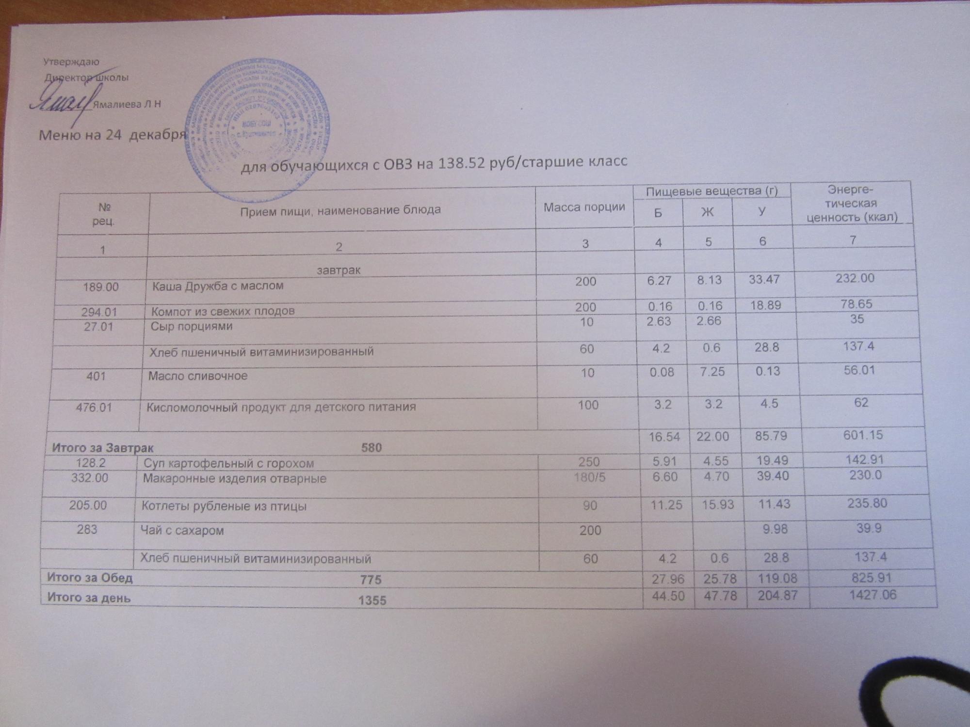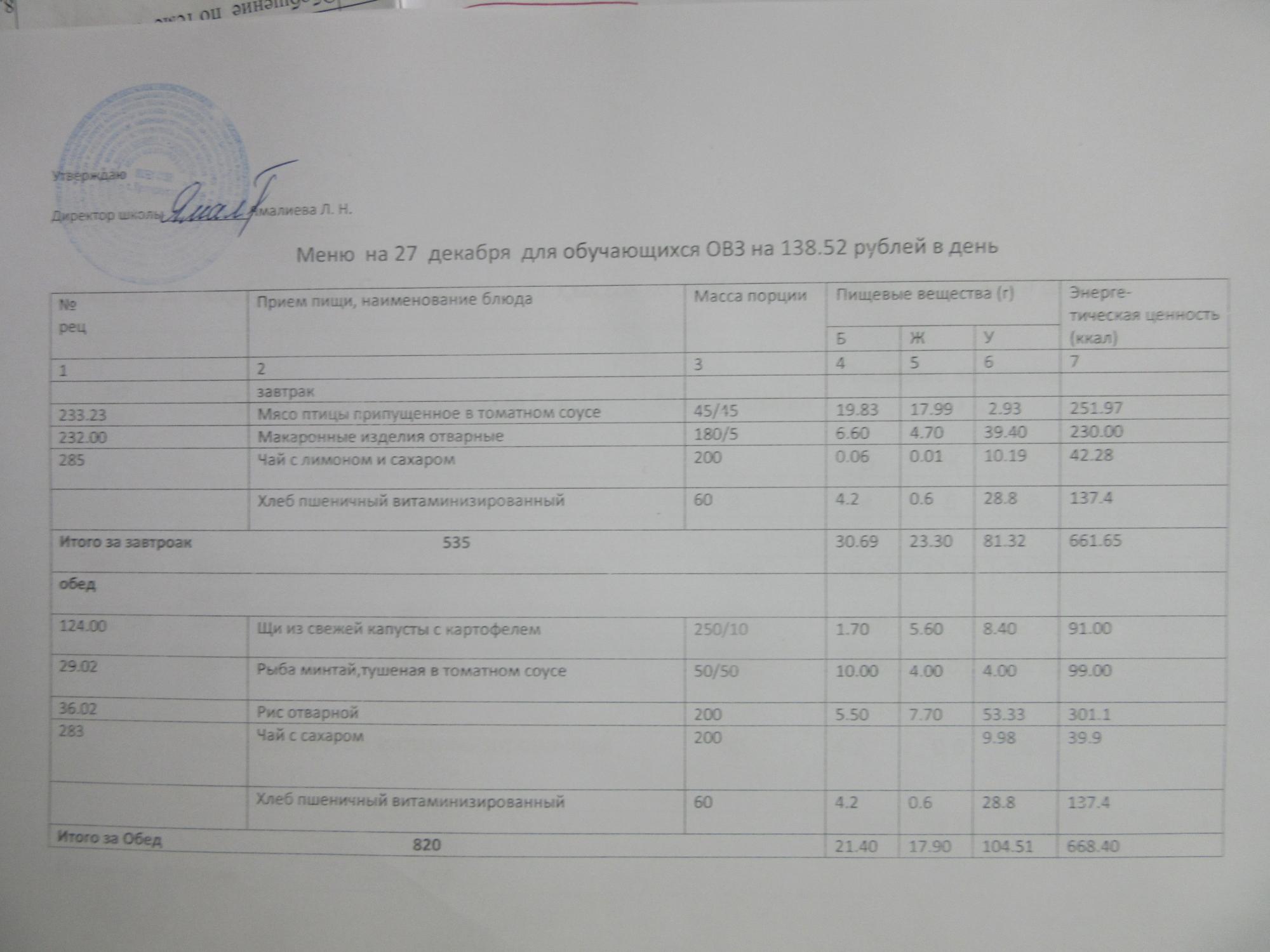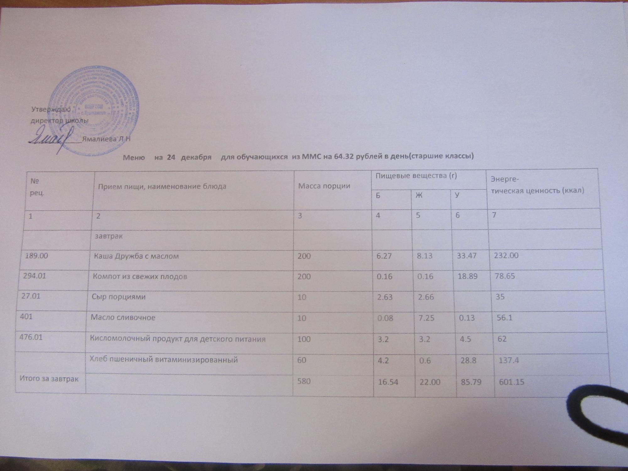 (ММС (старшие классы), РП, завтрак ОВЗ )