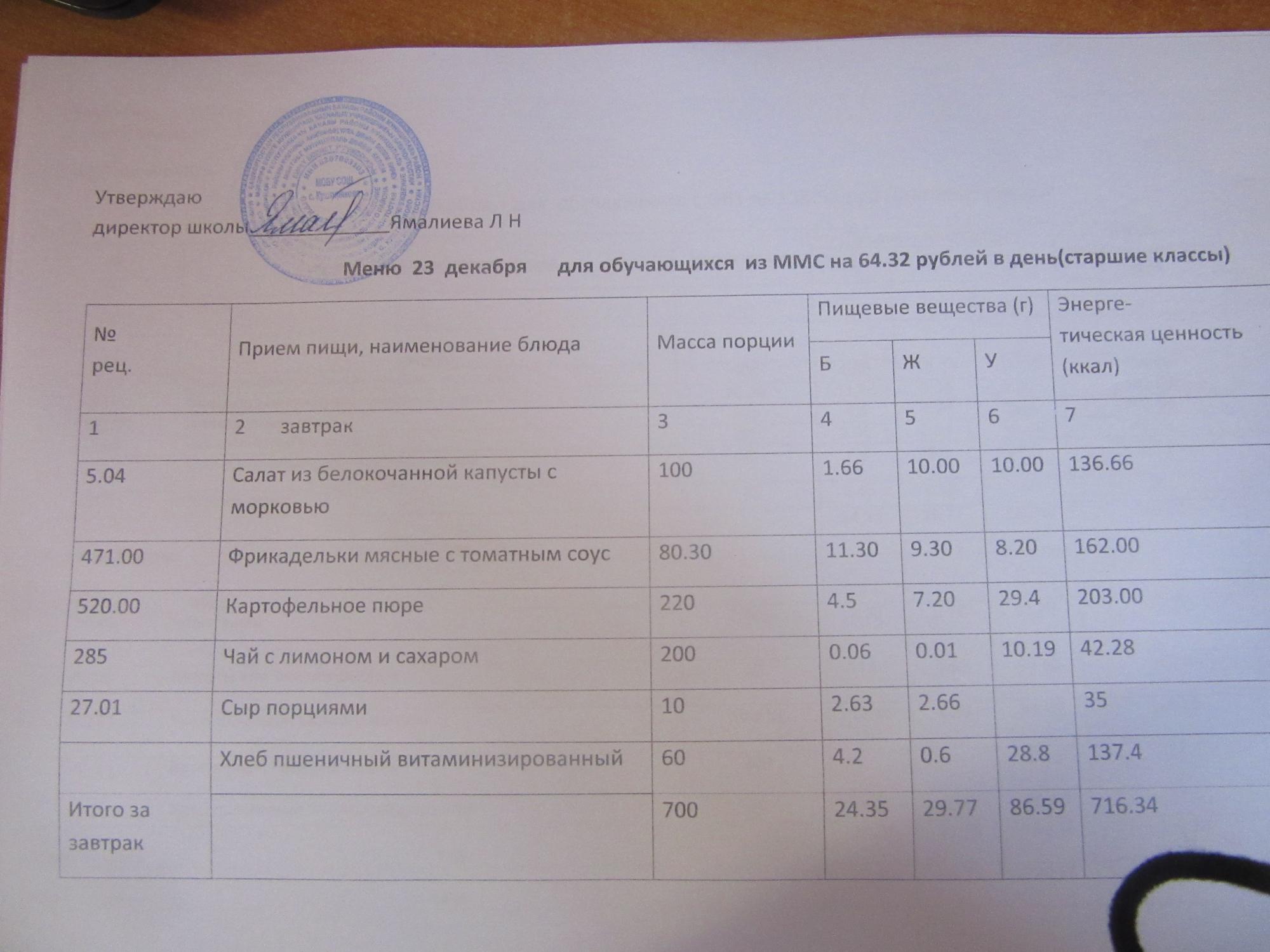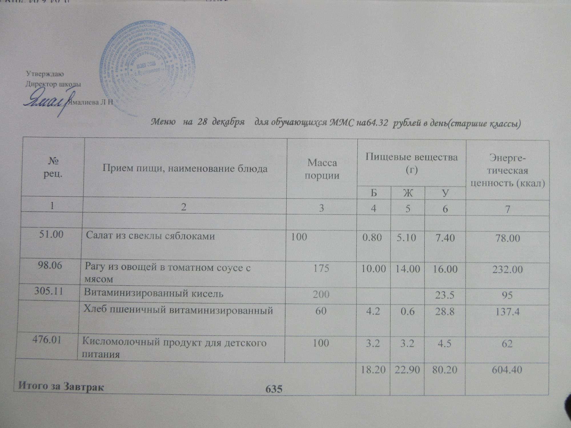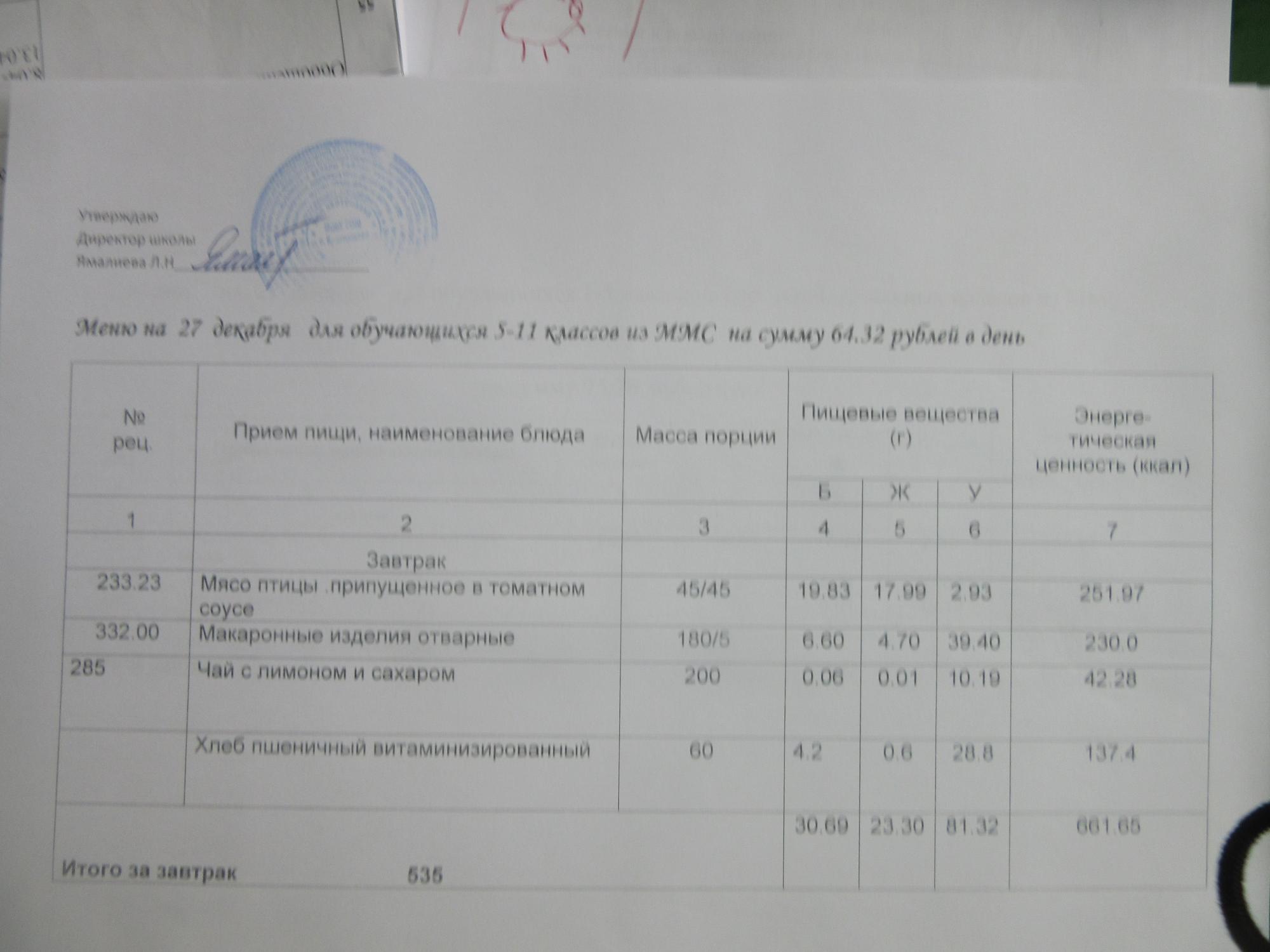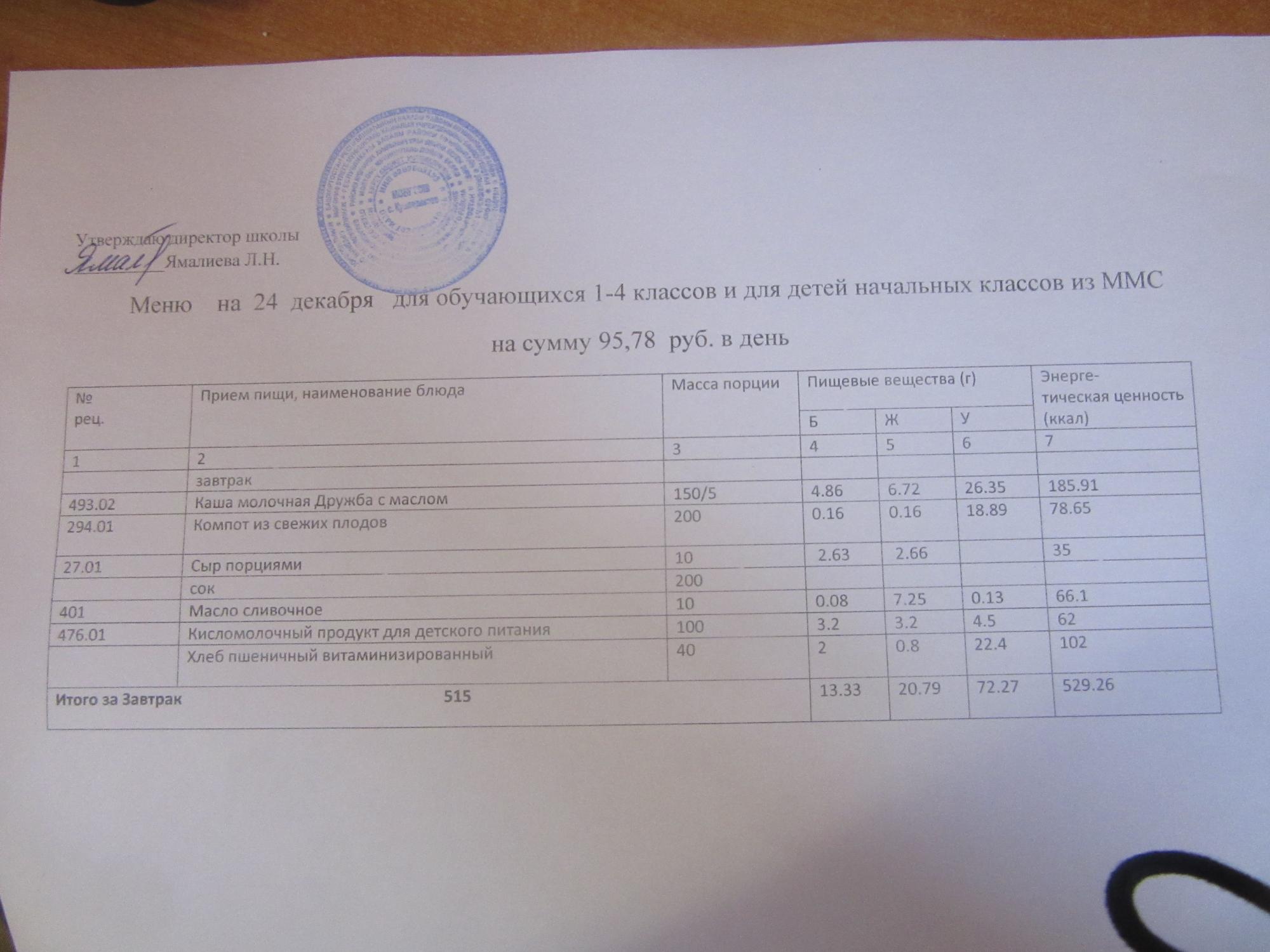 (ММС (старшие классы), РП, завтрак ОВЗ )