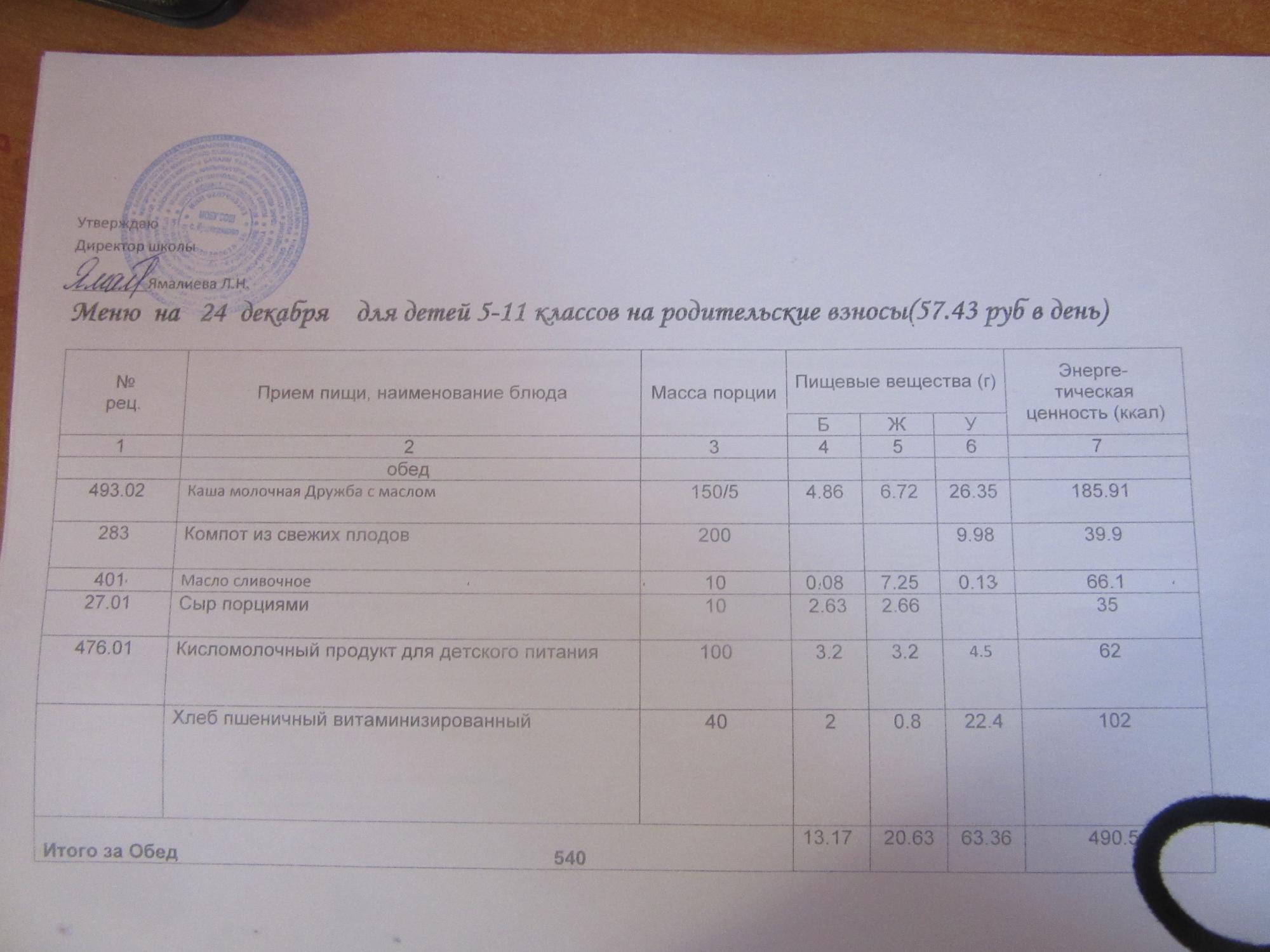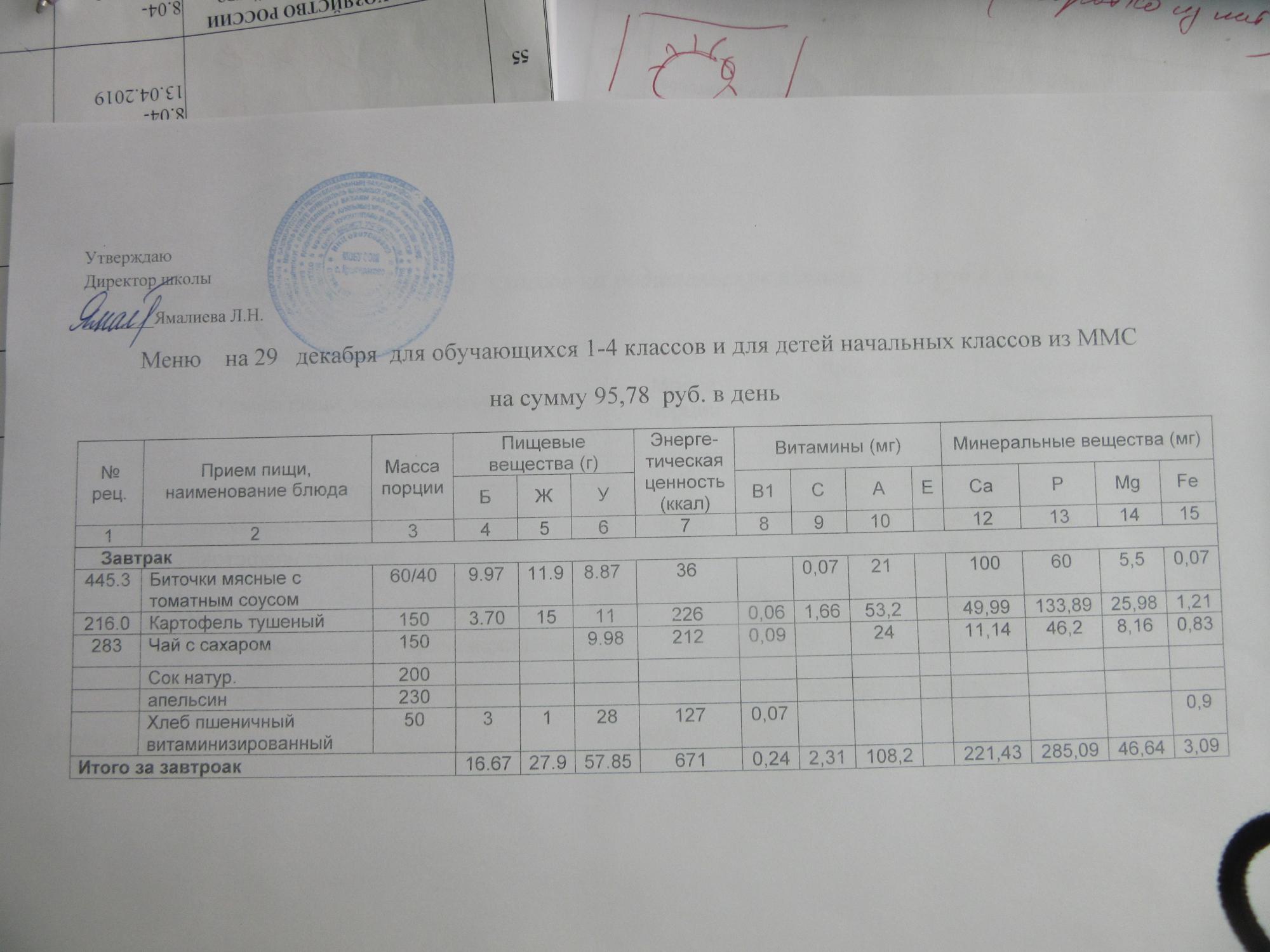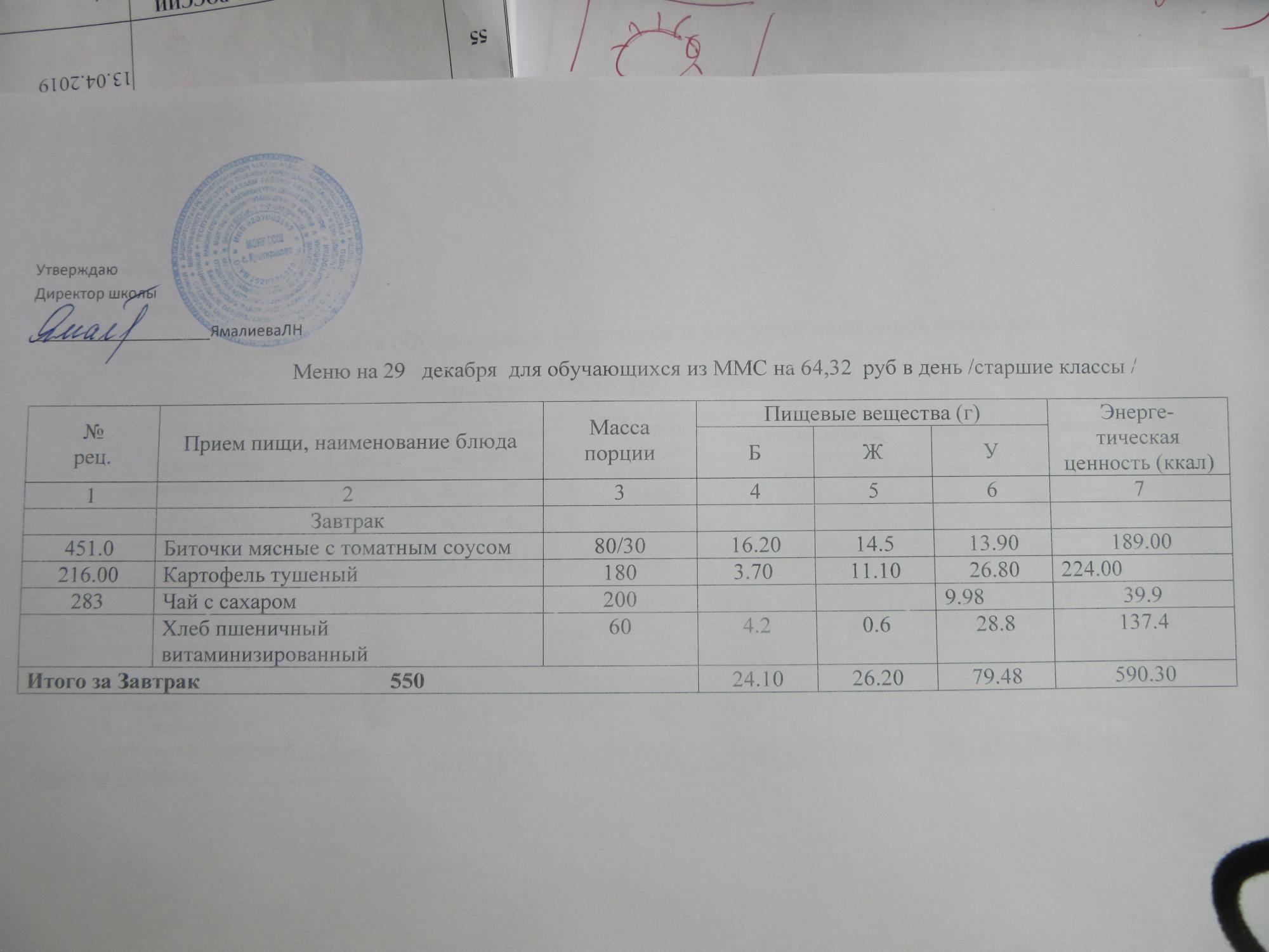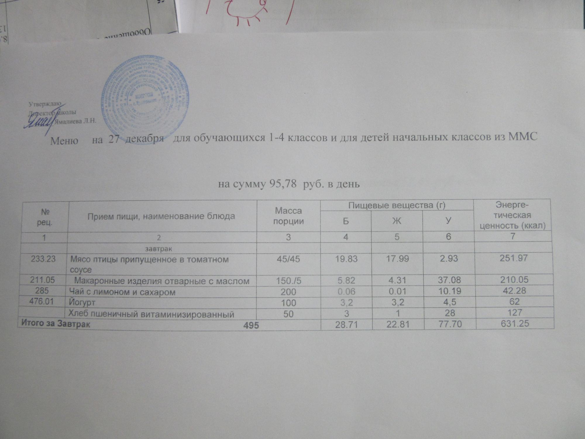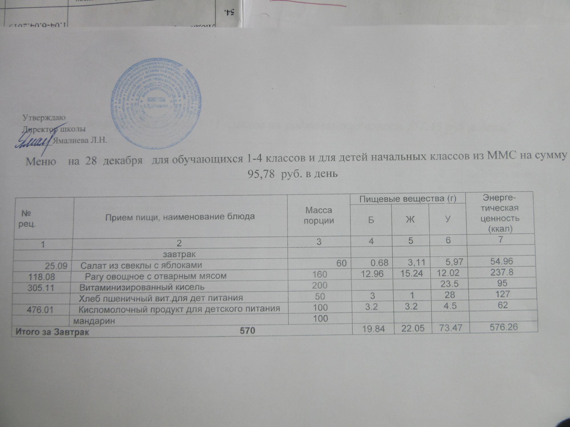 (ММС (старшие классы), РП, завтрак ОВЗ )