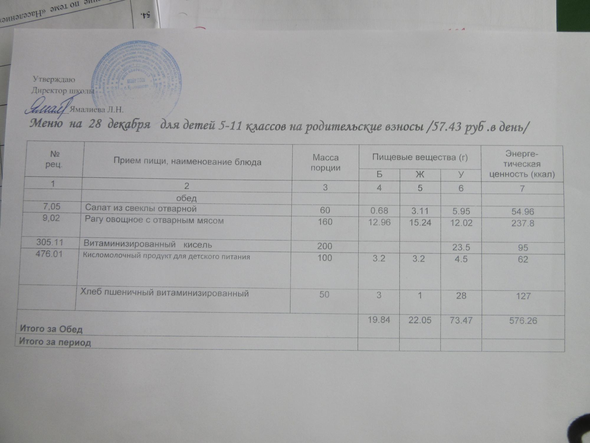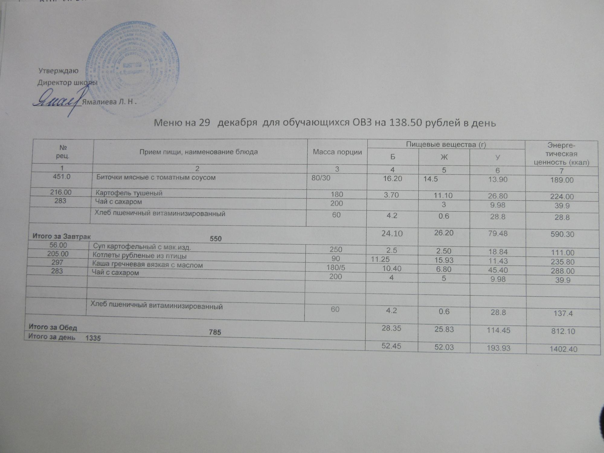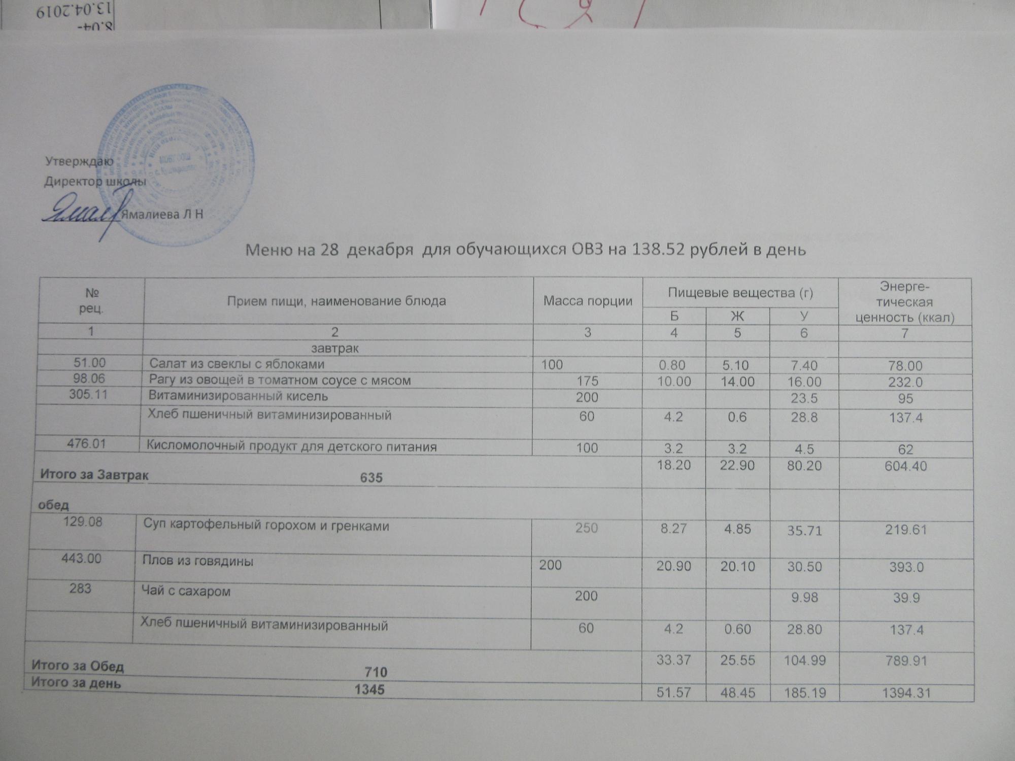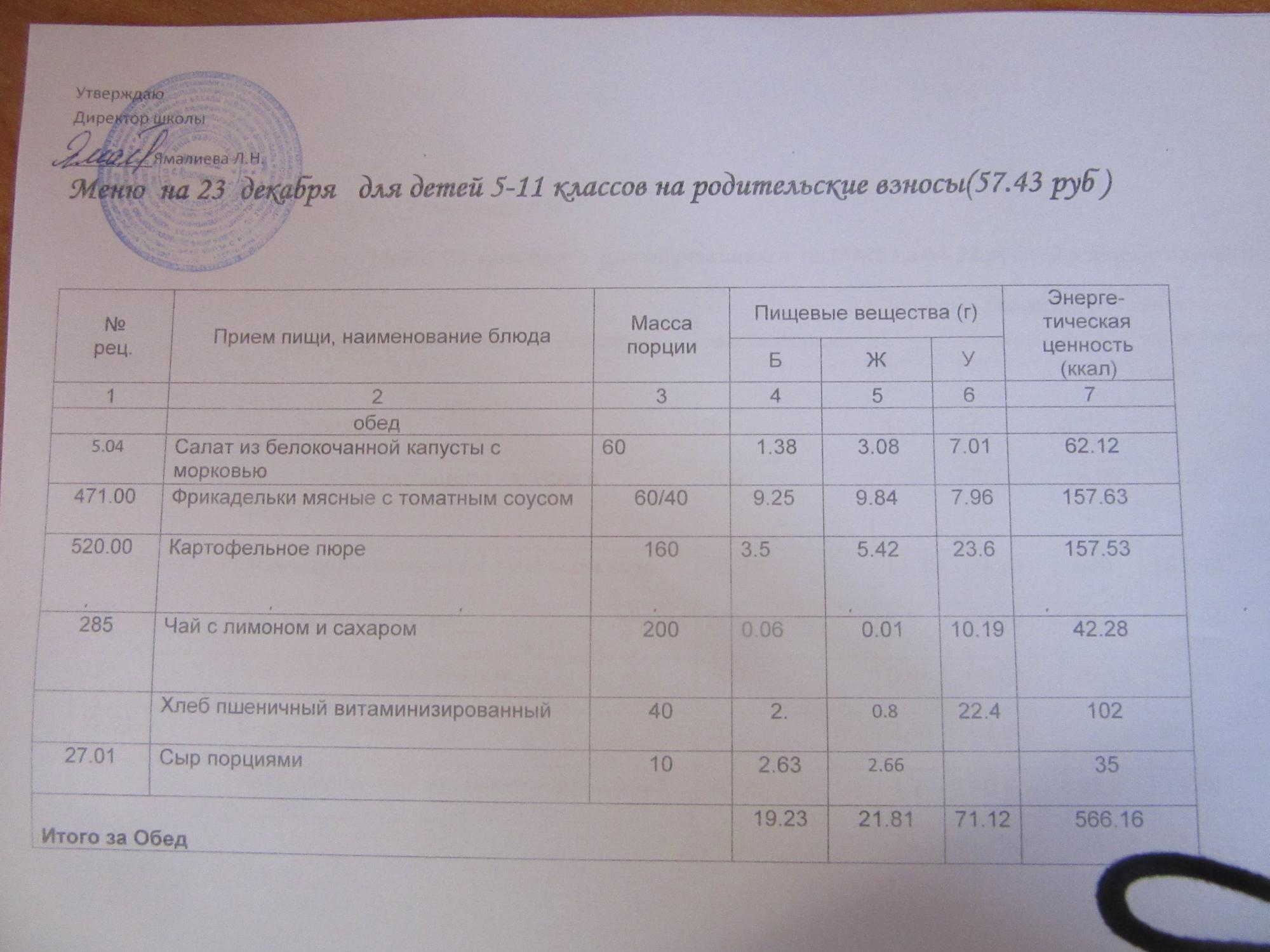 (ММС (старшие классы), РП, завтрак ОВЗ )