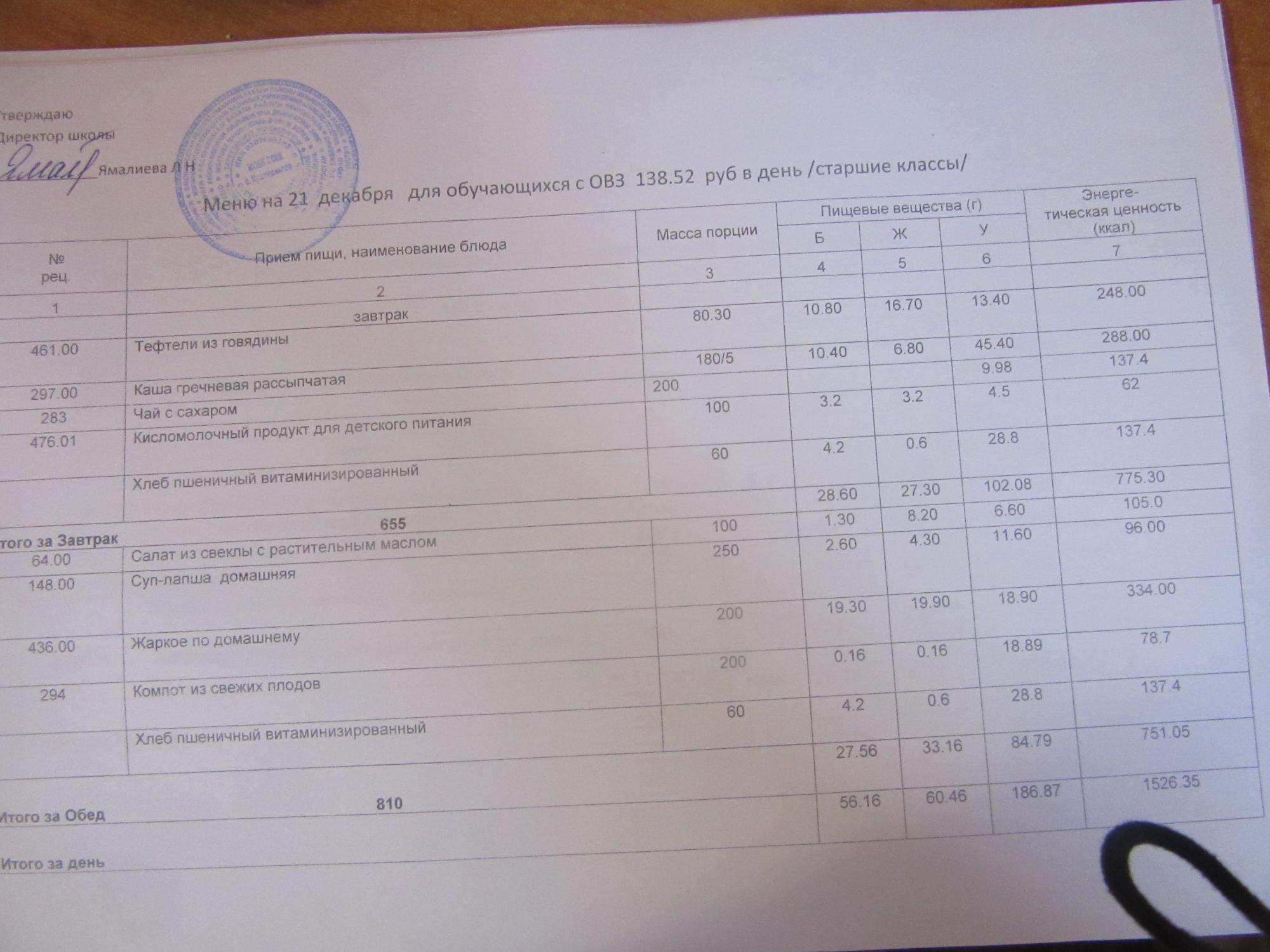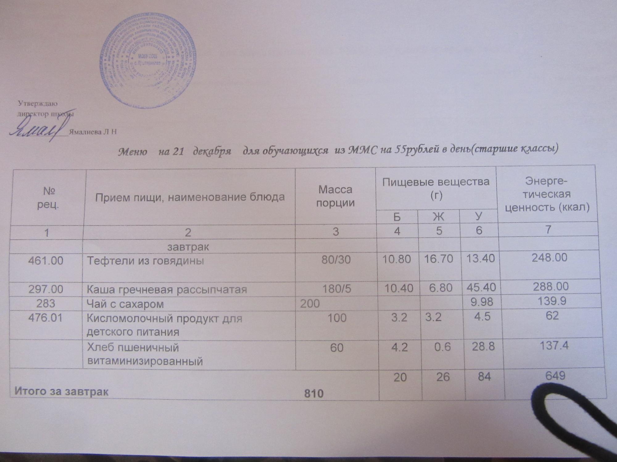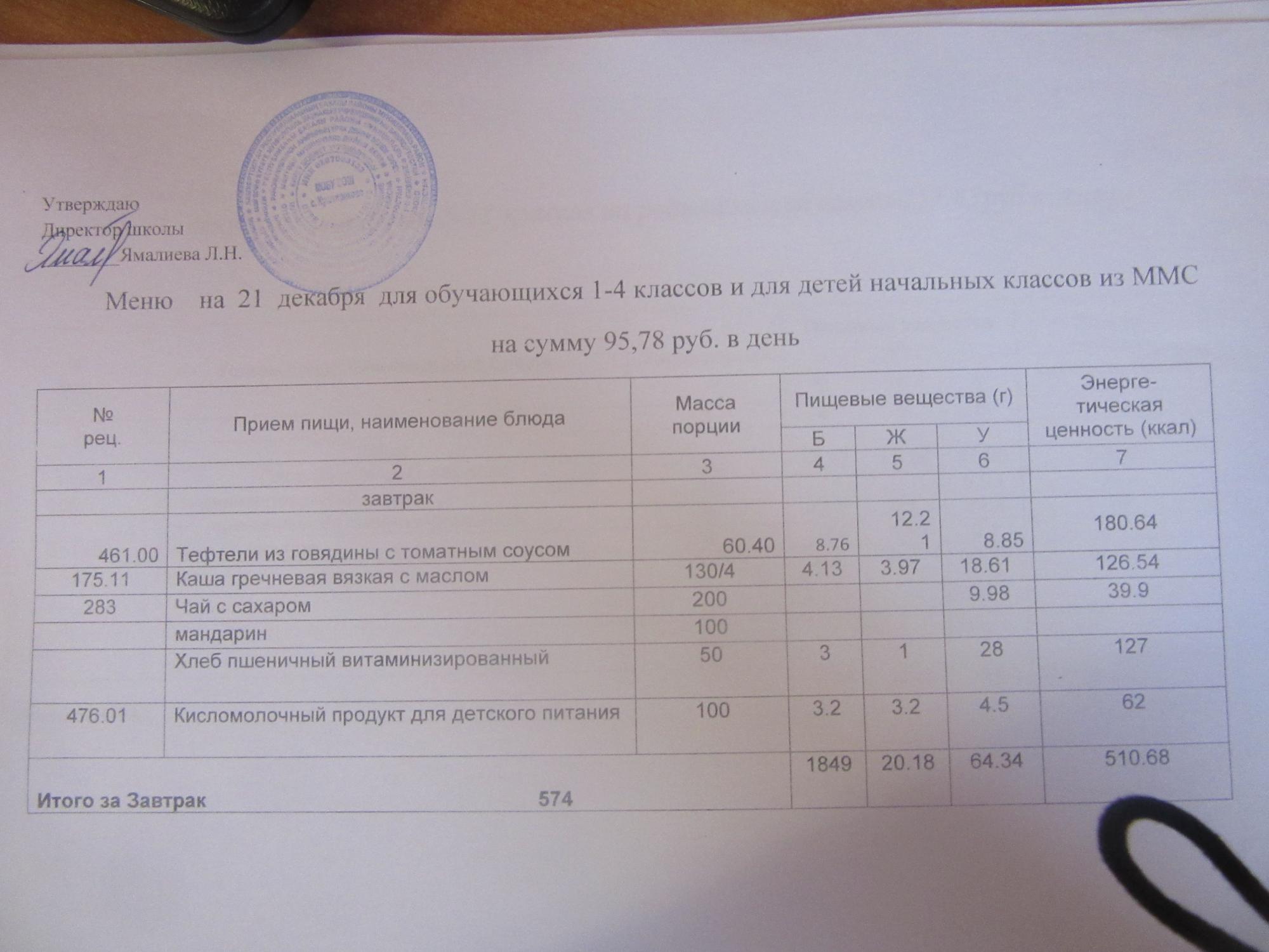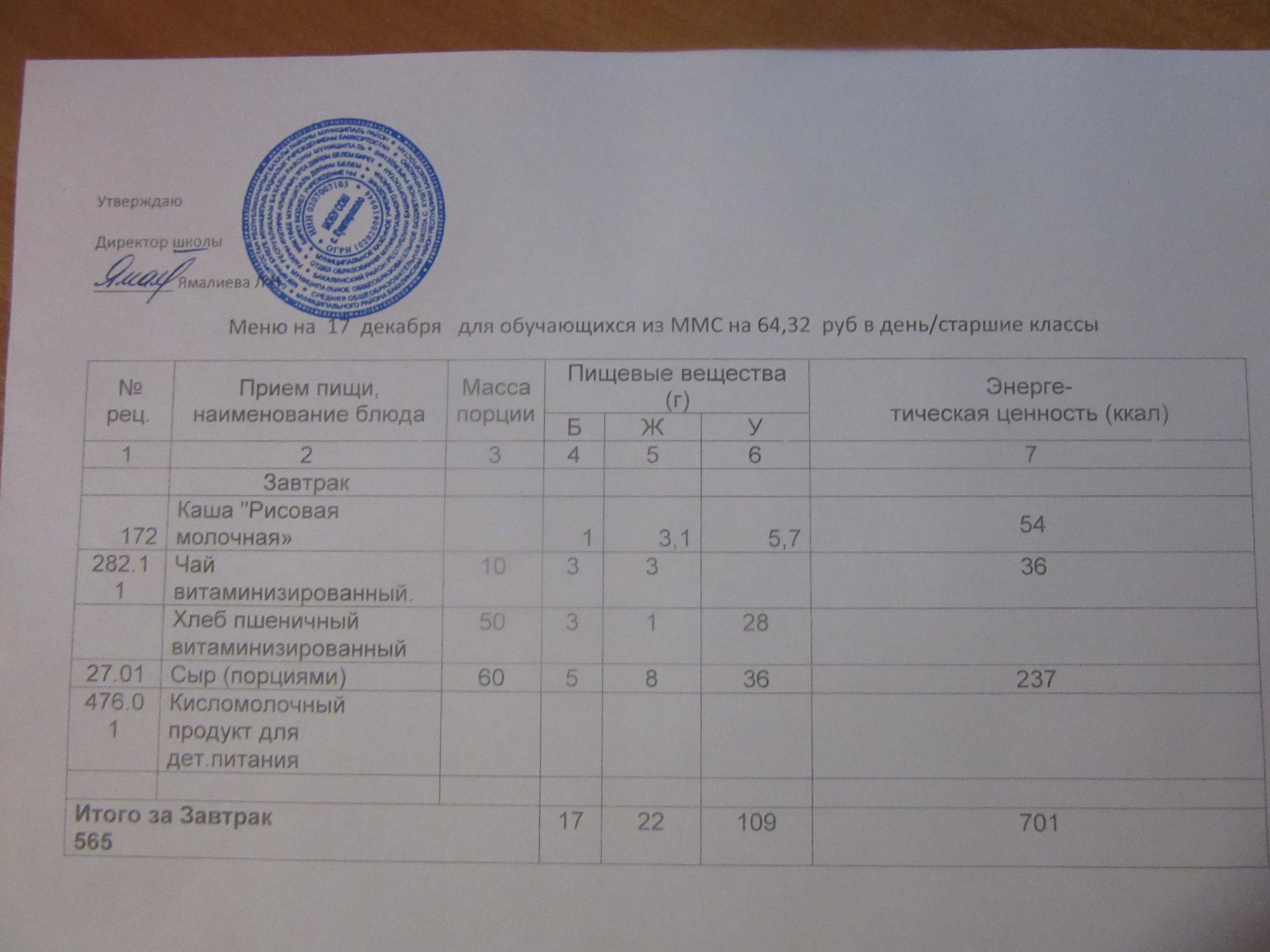 (ММС (старшие классы), РП, завтрак ОВЗ )