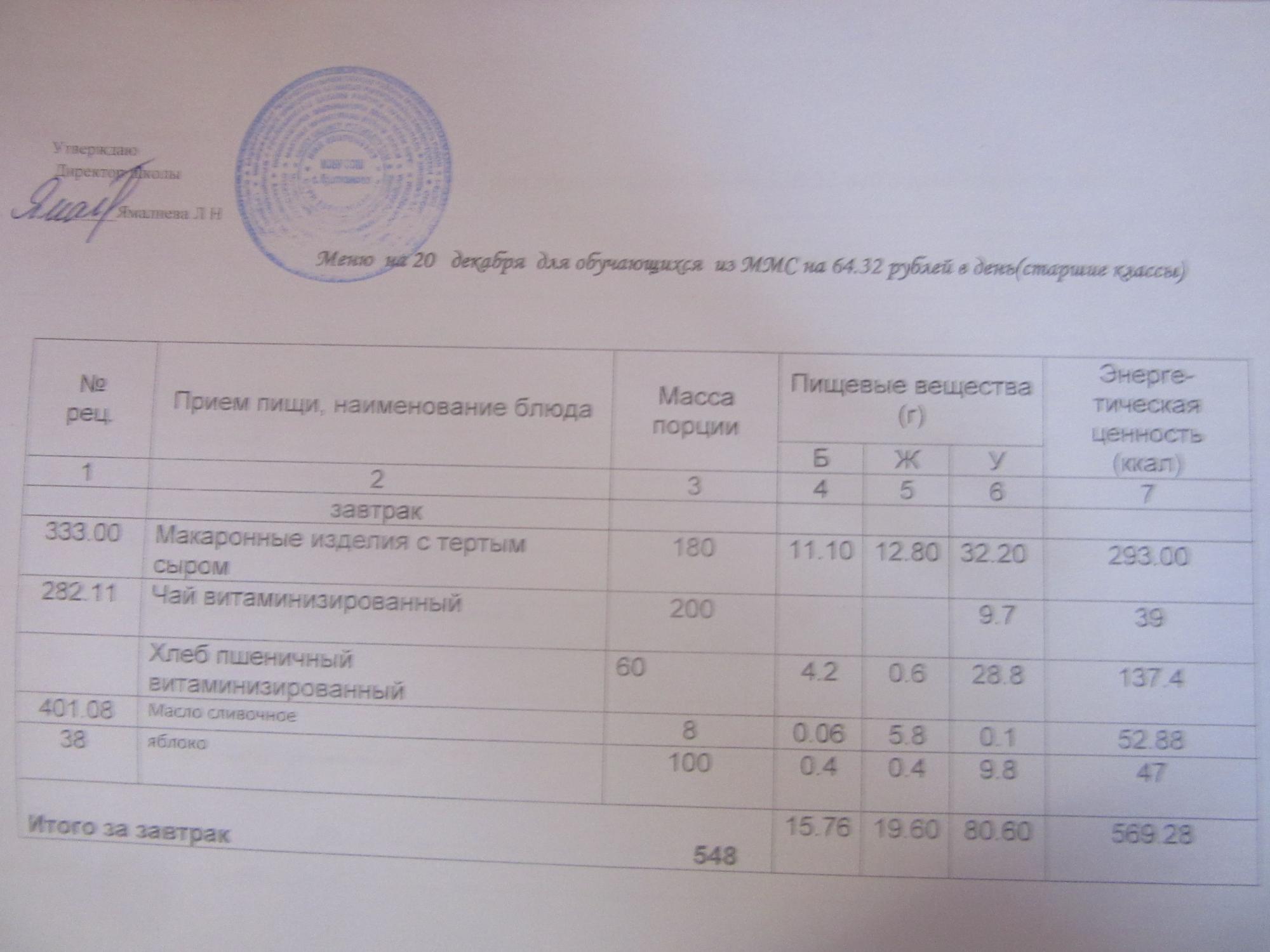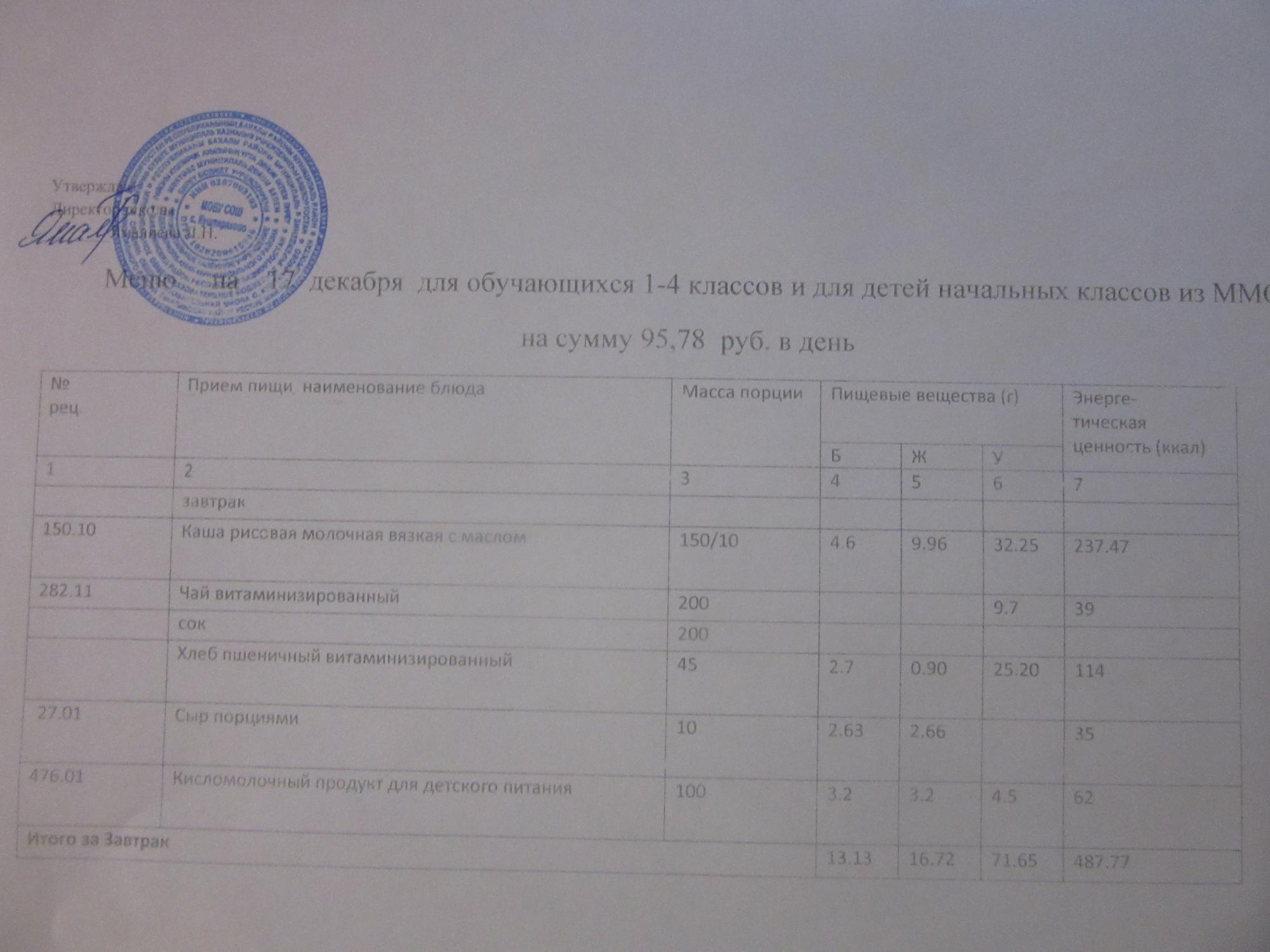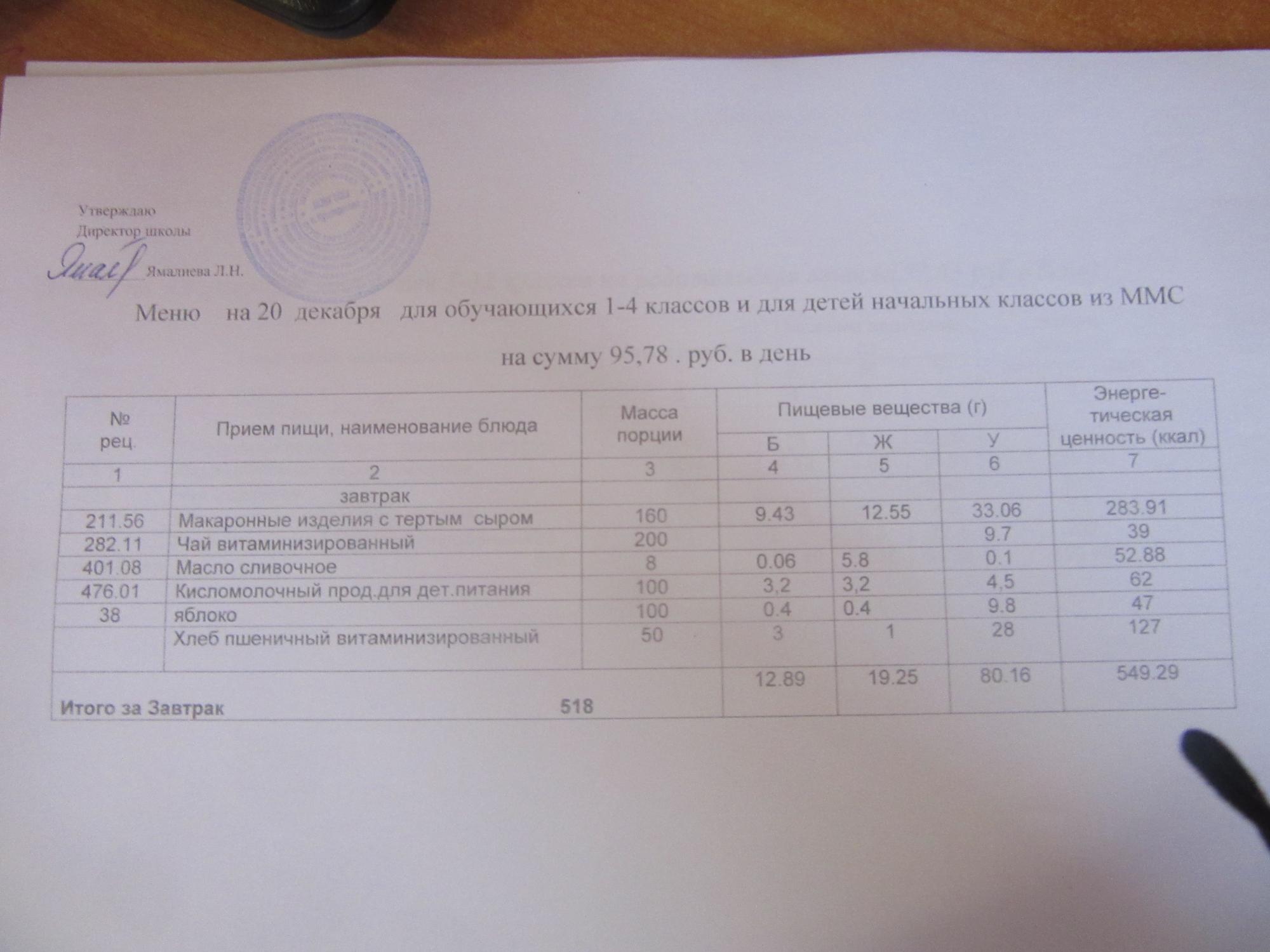(ММС (старшие классы), РП, завтрак ОВЗ )