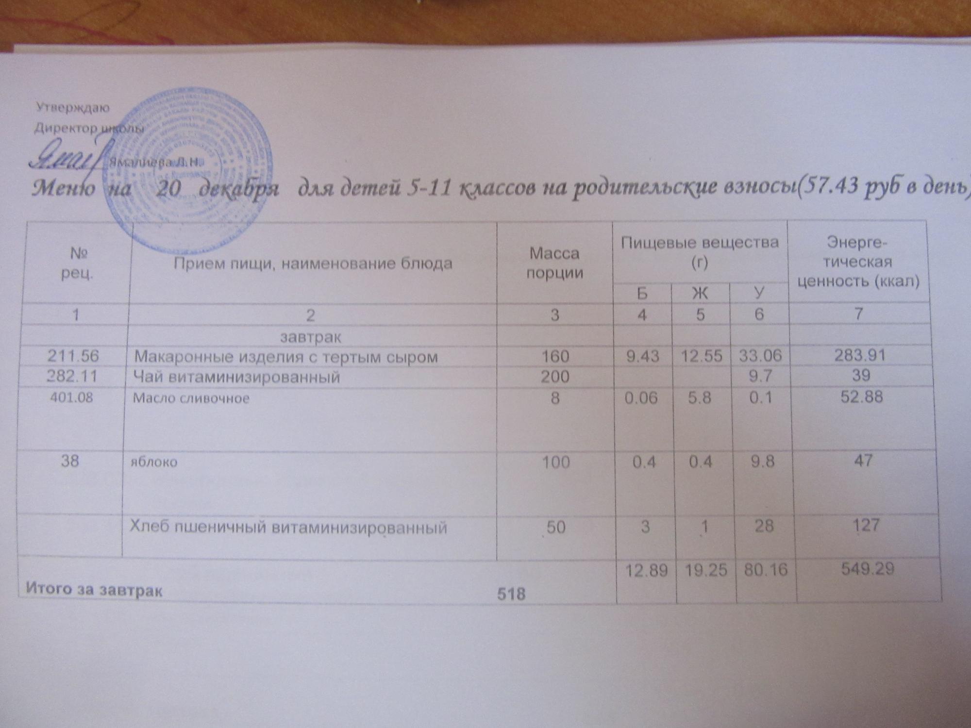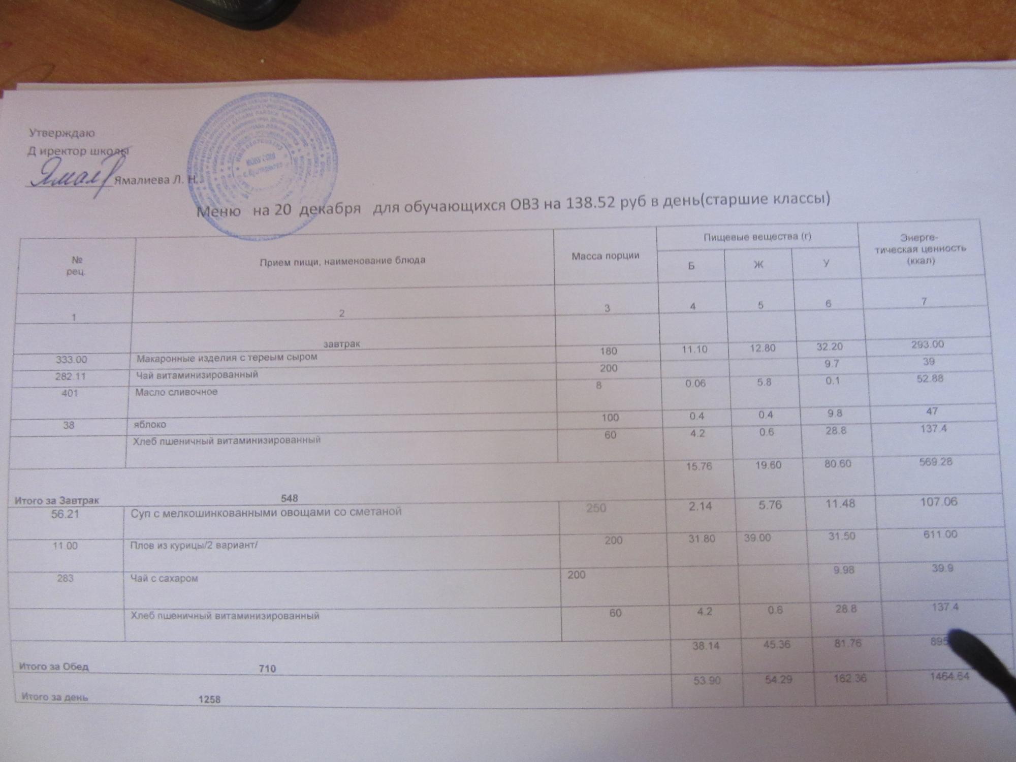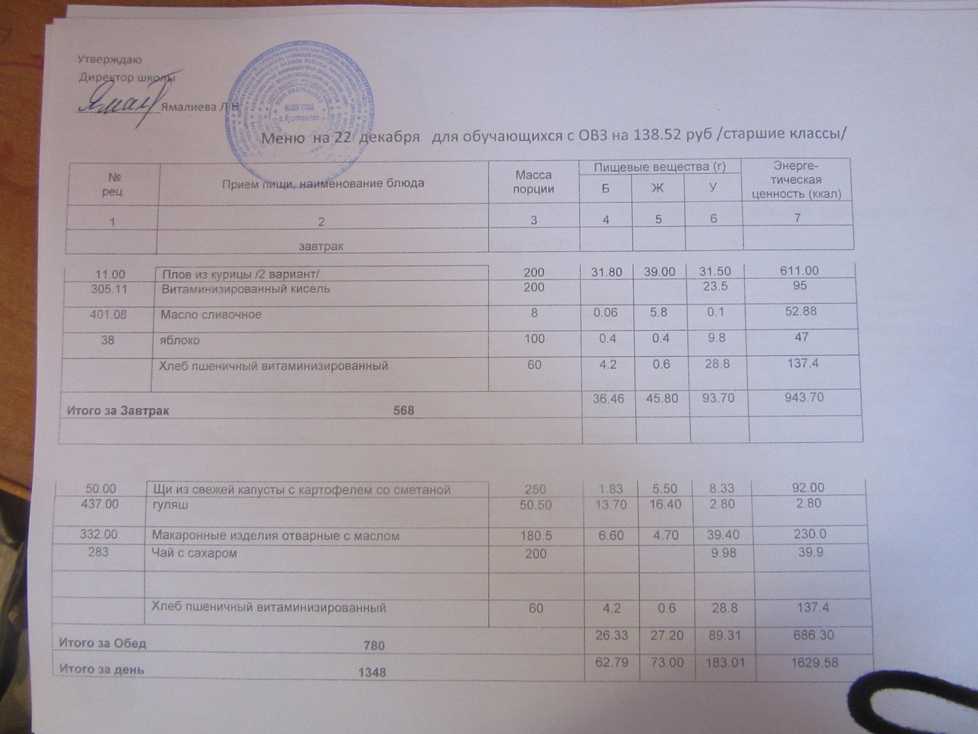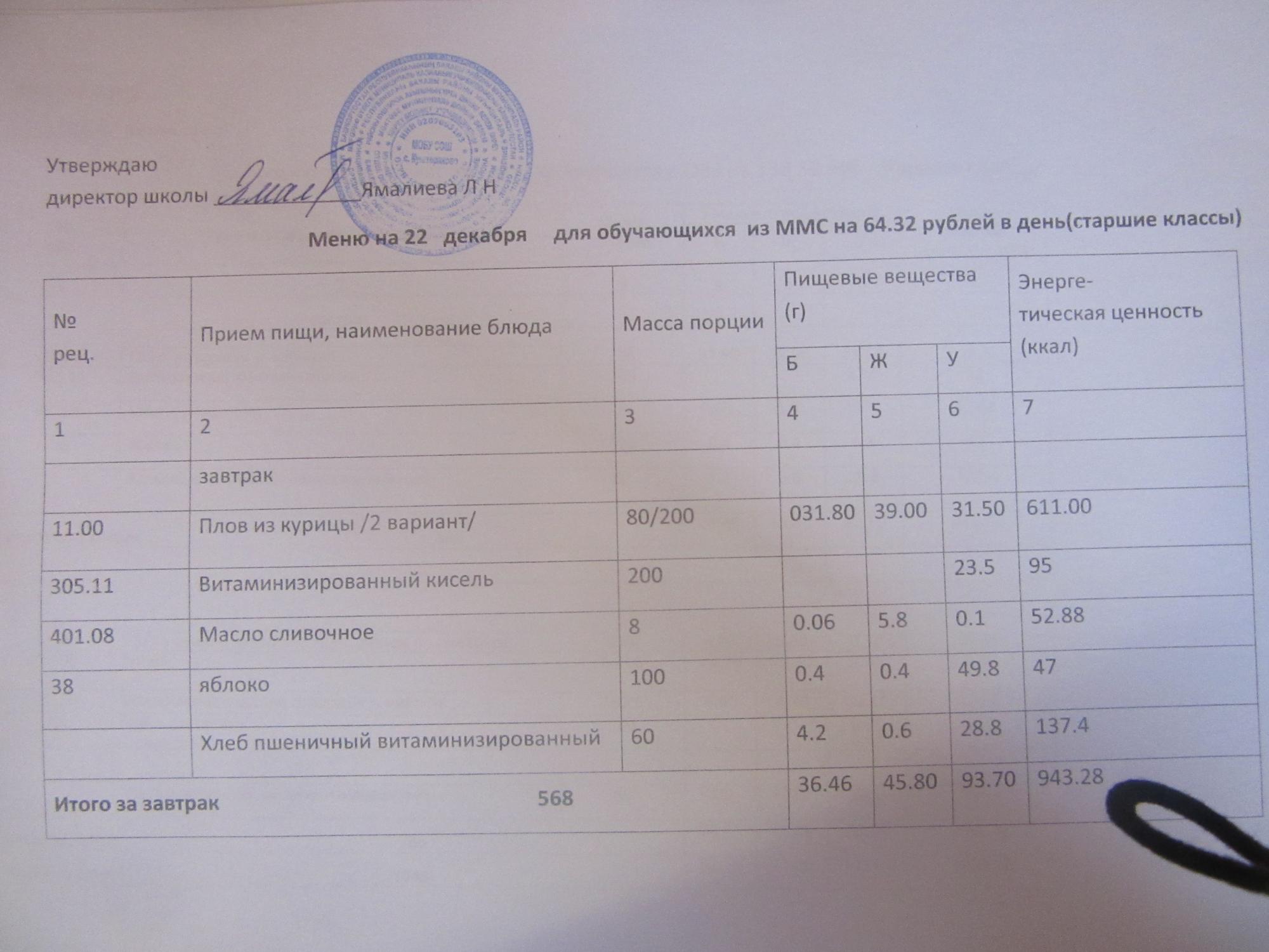 (ММС (старшие классы), РП, завтрак ОВЗ )
