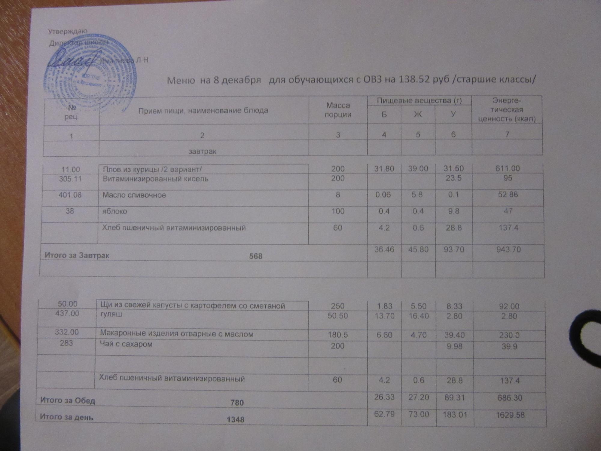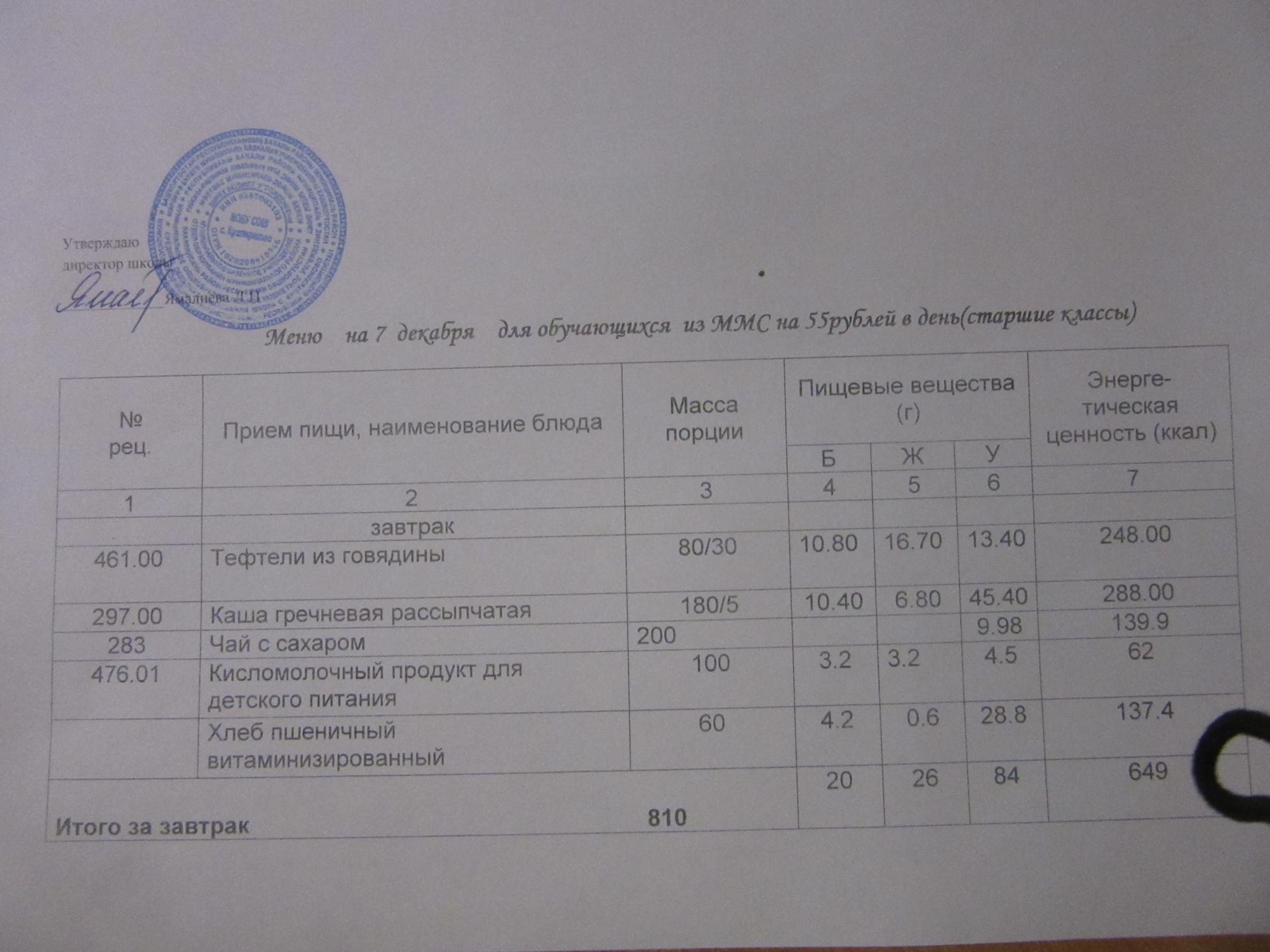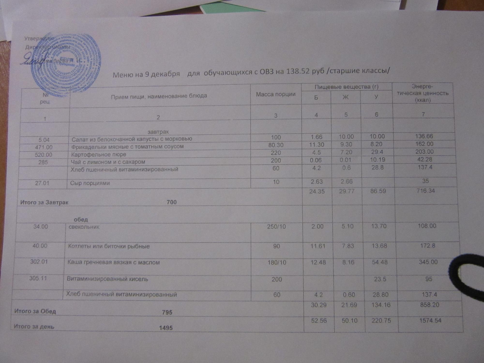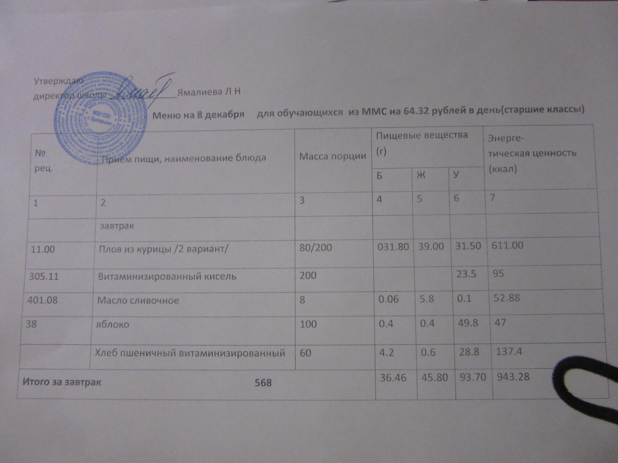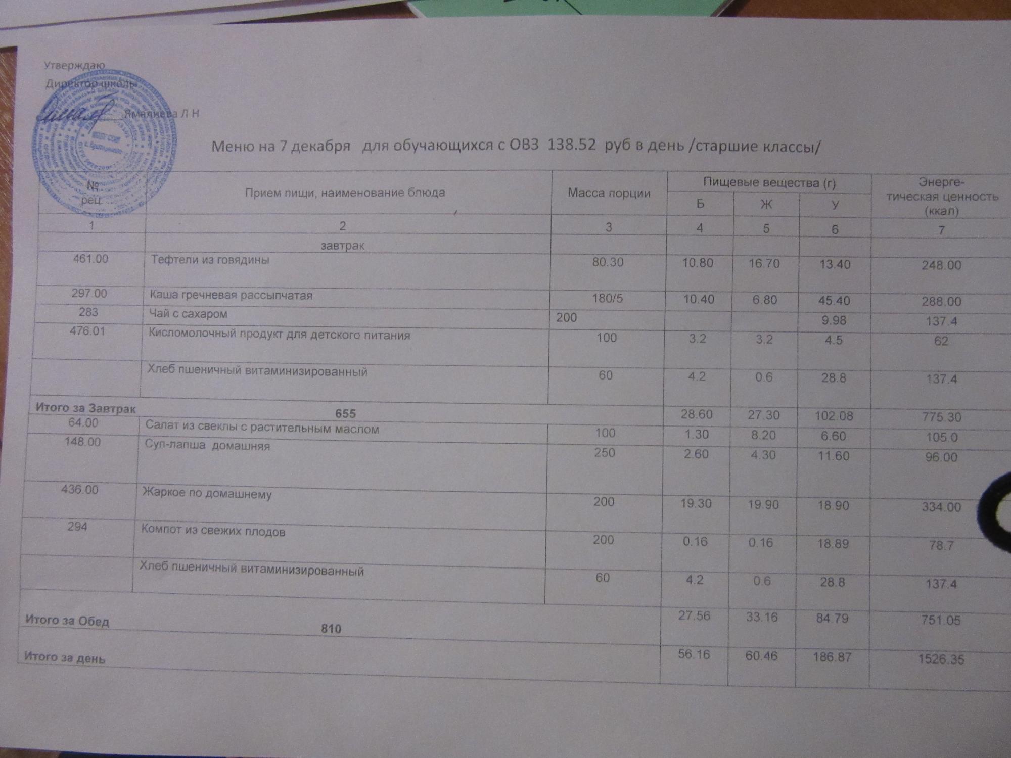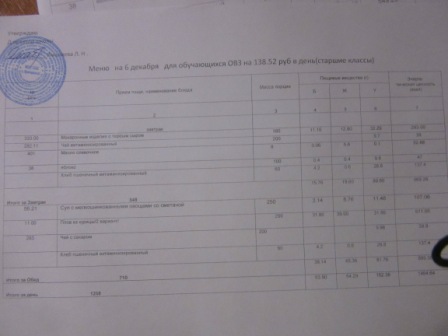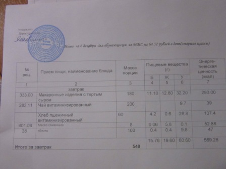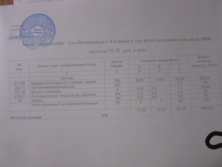 (ММС (старшие классы), РП, завтрак ОВЗ )