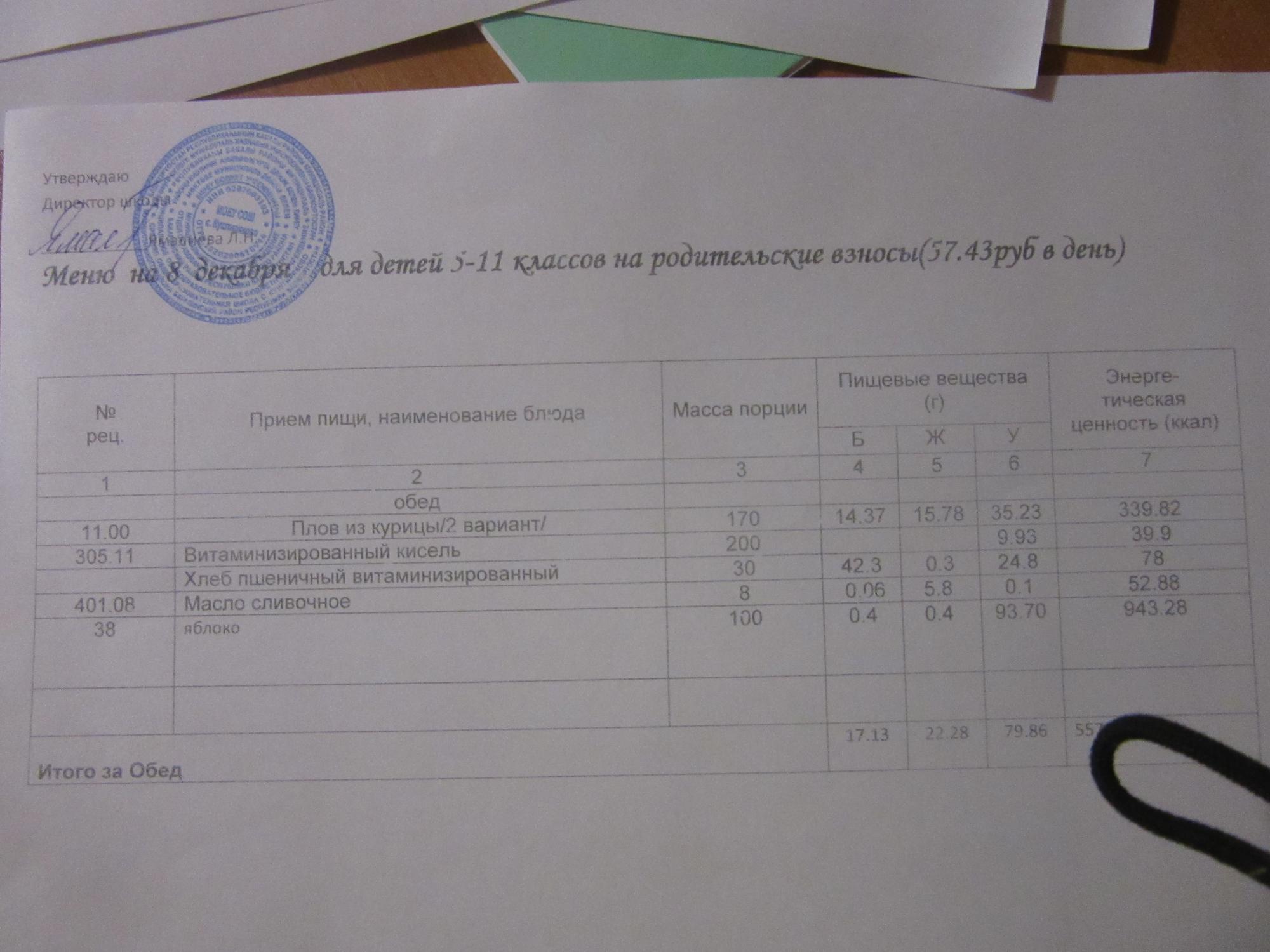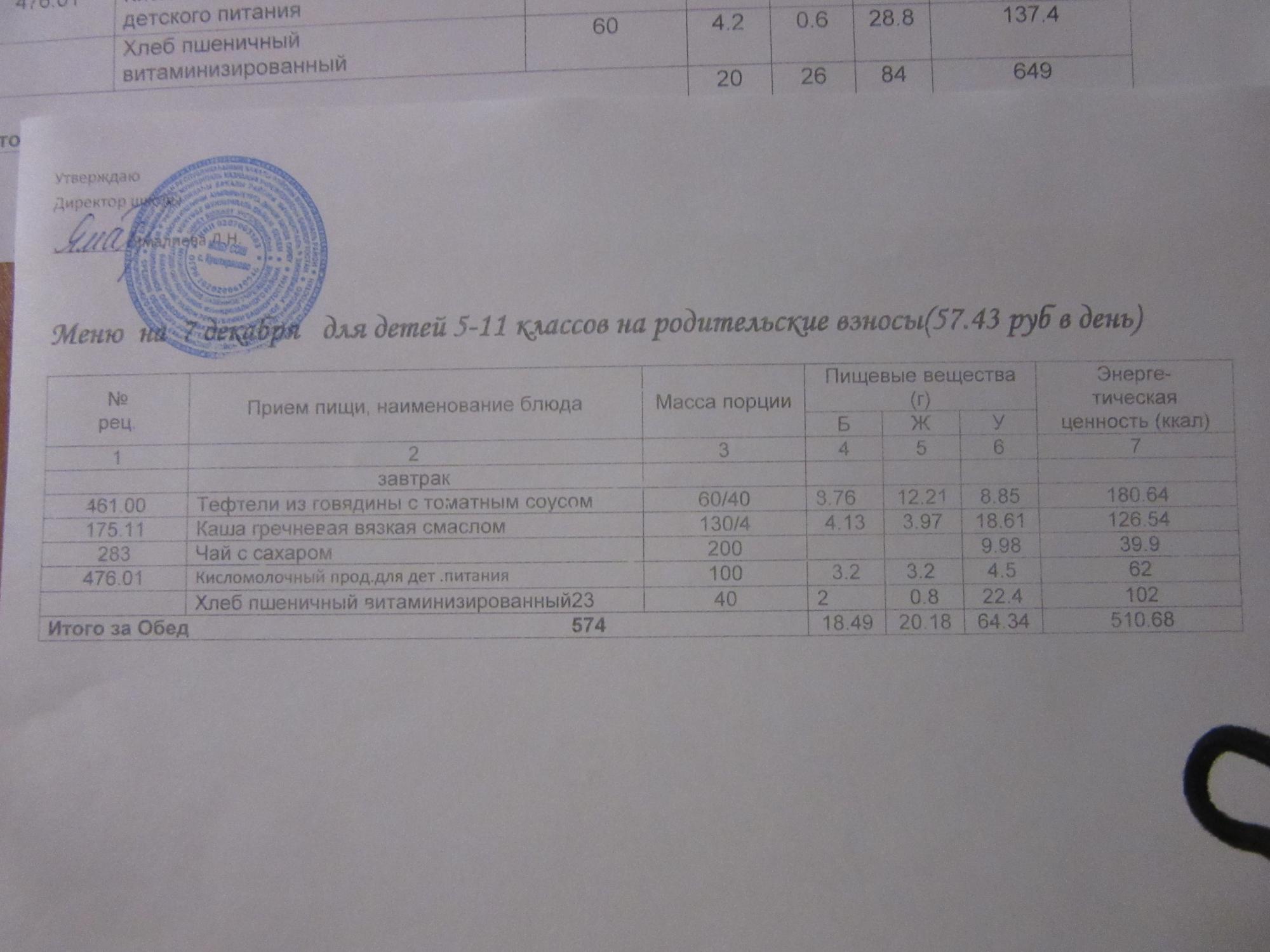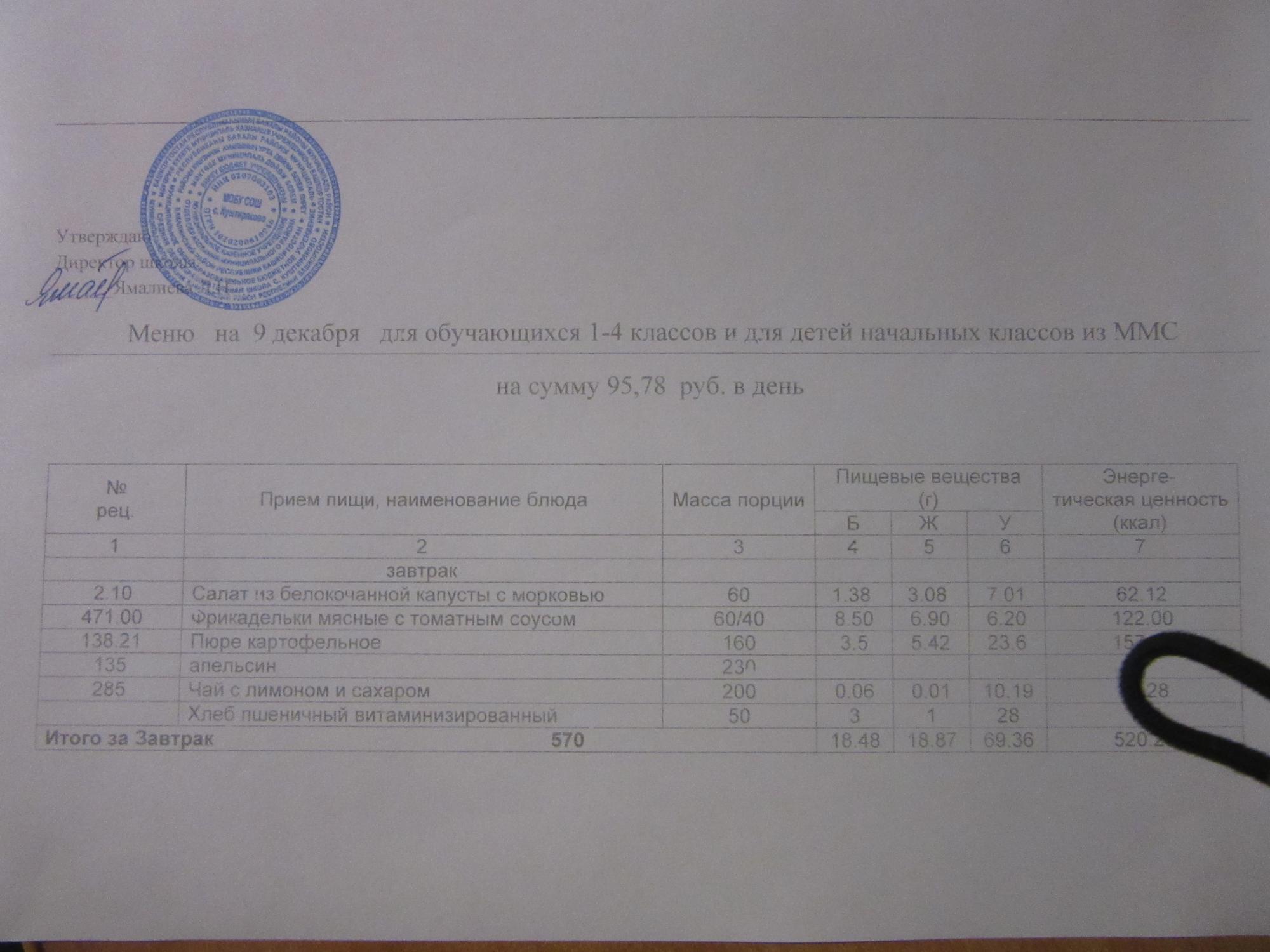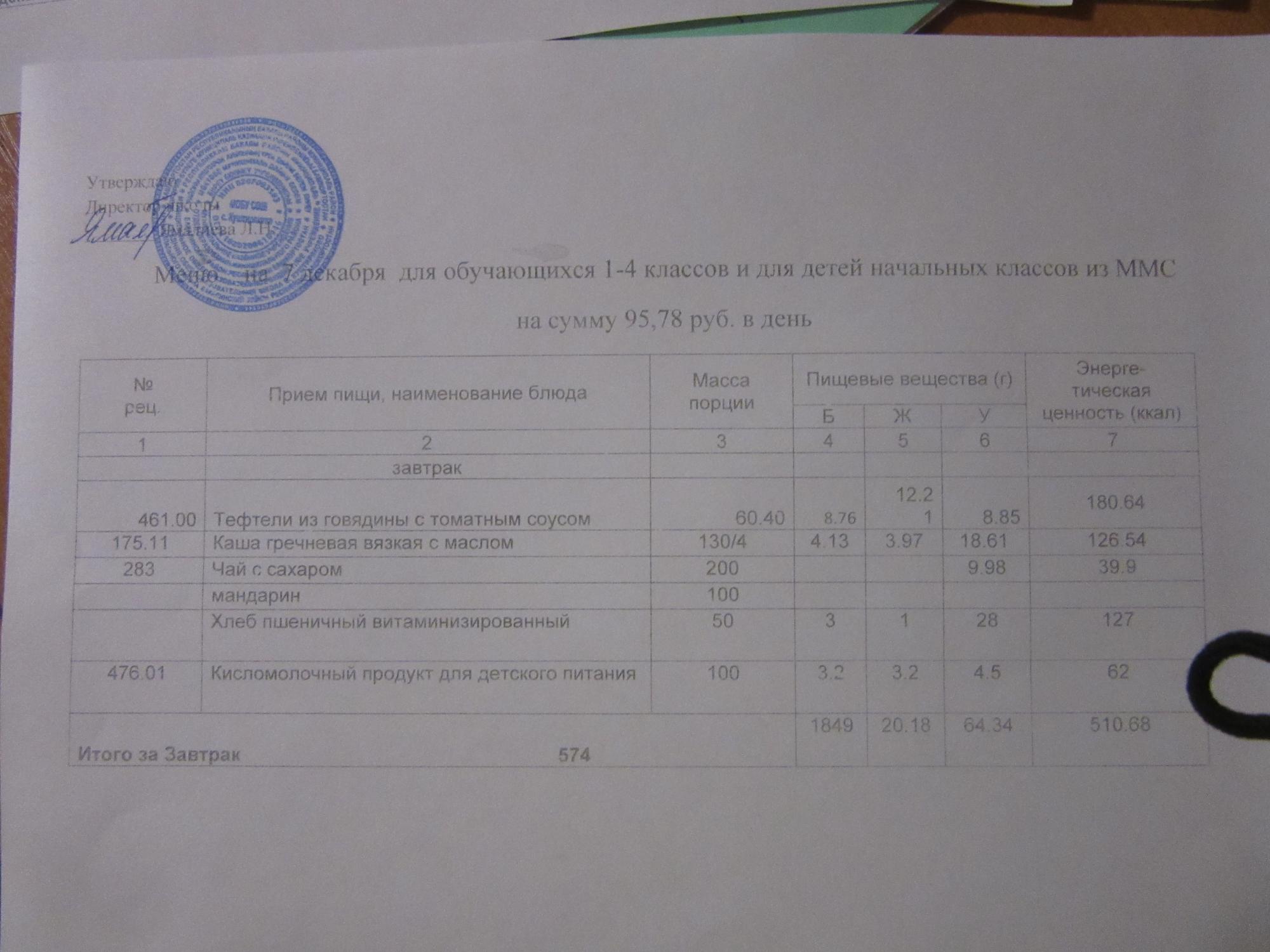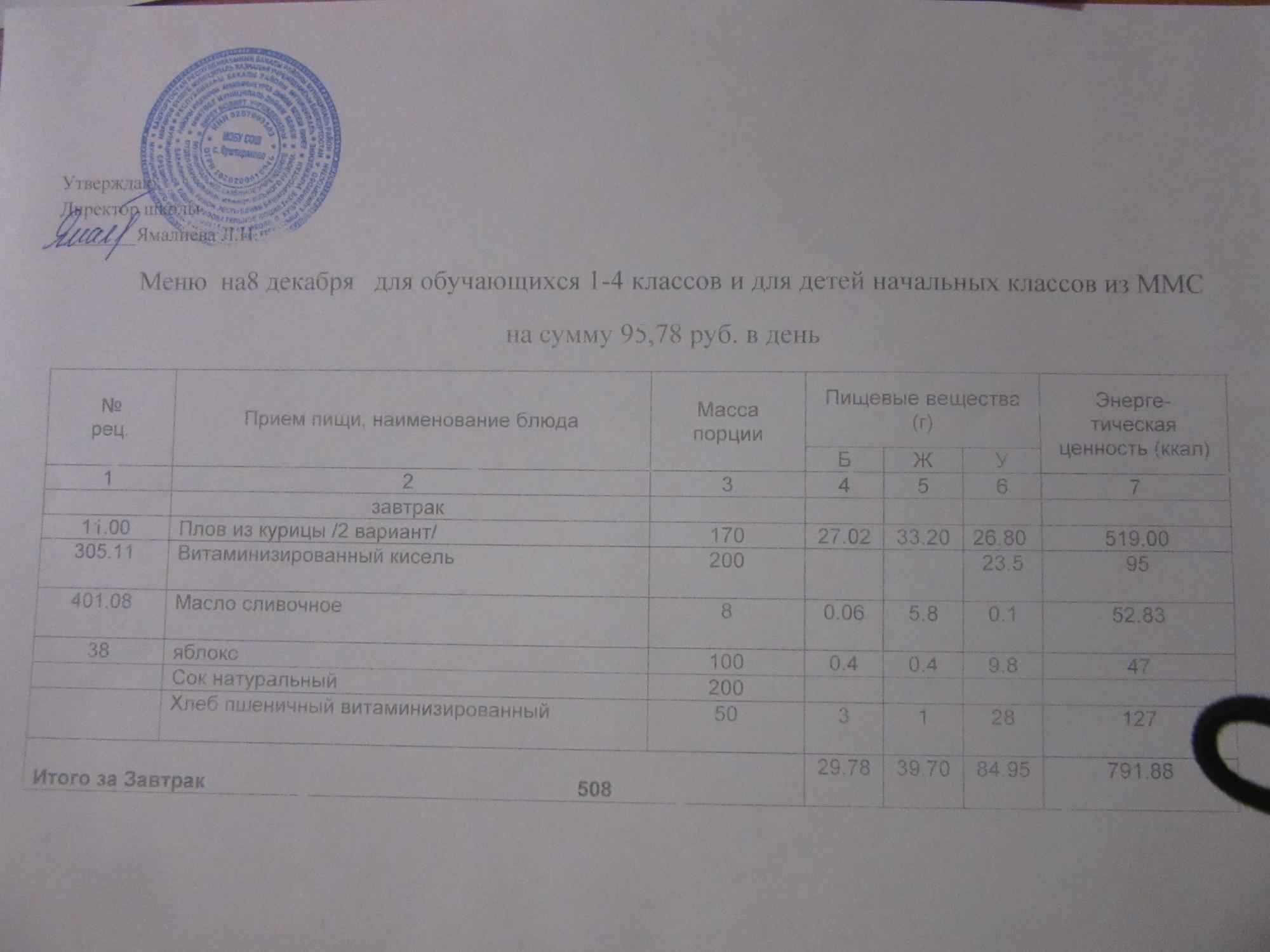 (ММС (старшие классы), РП, завтрак ОВЗ )