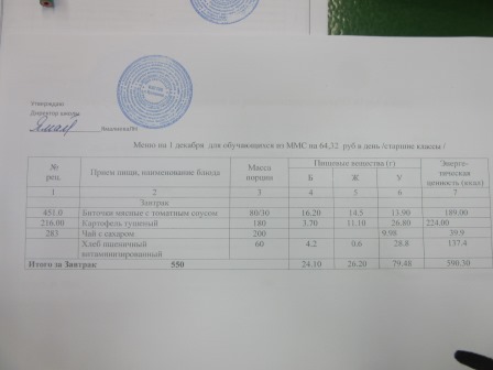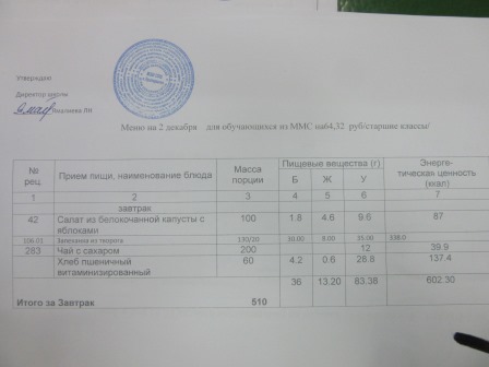(ММС (старшие классы), РП, завтрак ОВЗ )