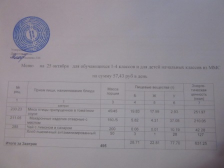 (РП, нач. классы, ММС, завтрак ОВЗ)