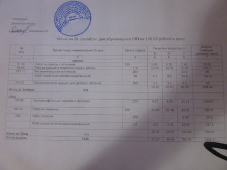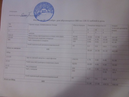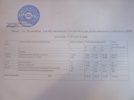 (РП, нач. классы, ММС, завтрак ОВЗ)