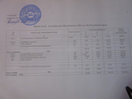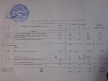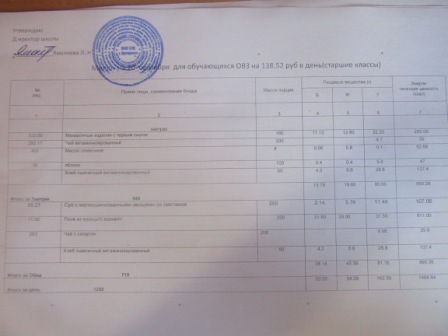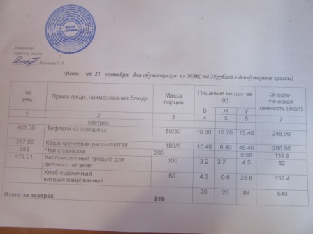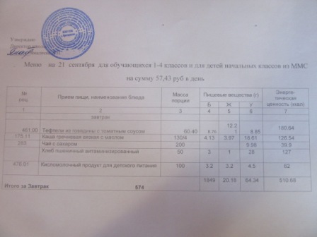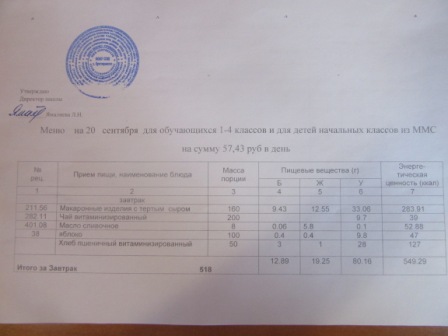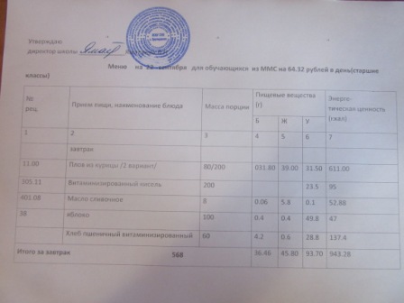 (РП, нач. классы, ММС, завтрак ОВЗ)