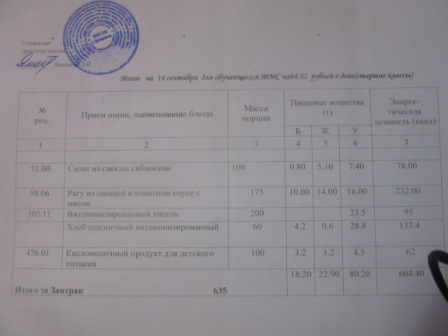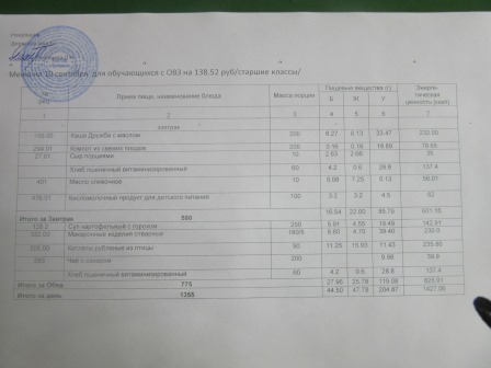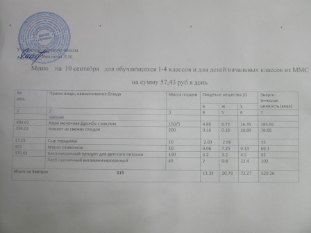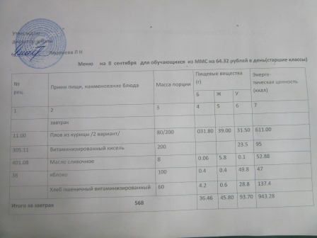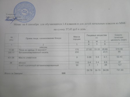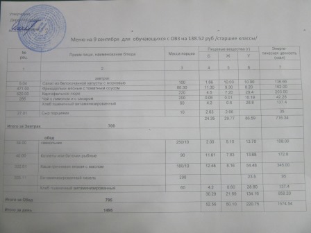 (РП, нач. классы, ММС, завтрак ОВЗ)